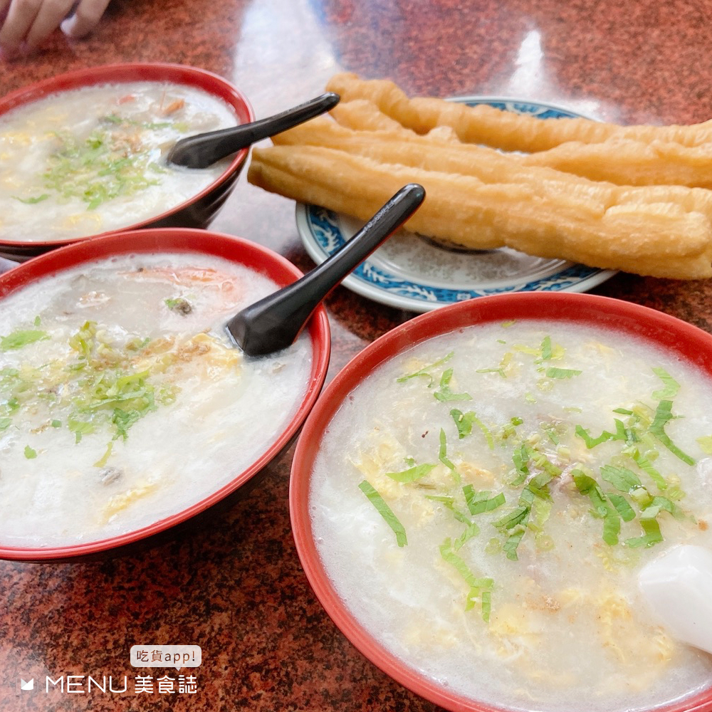 在地八十年的美食小吃,每天早上 6 點開始營業,現煮的廣東粥,加進肉丸、貢丸、蛋、豬肝,最後撒上芹菜,整碗看起來非常誘人,帶有胡椒香氣,鹹香適中。