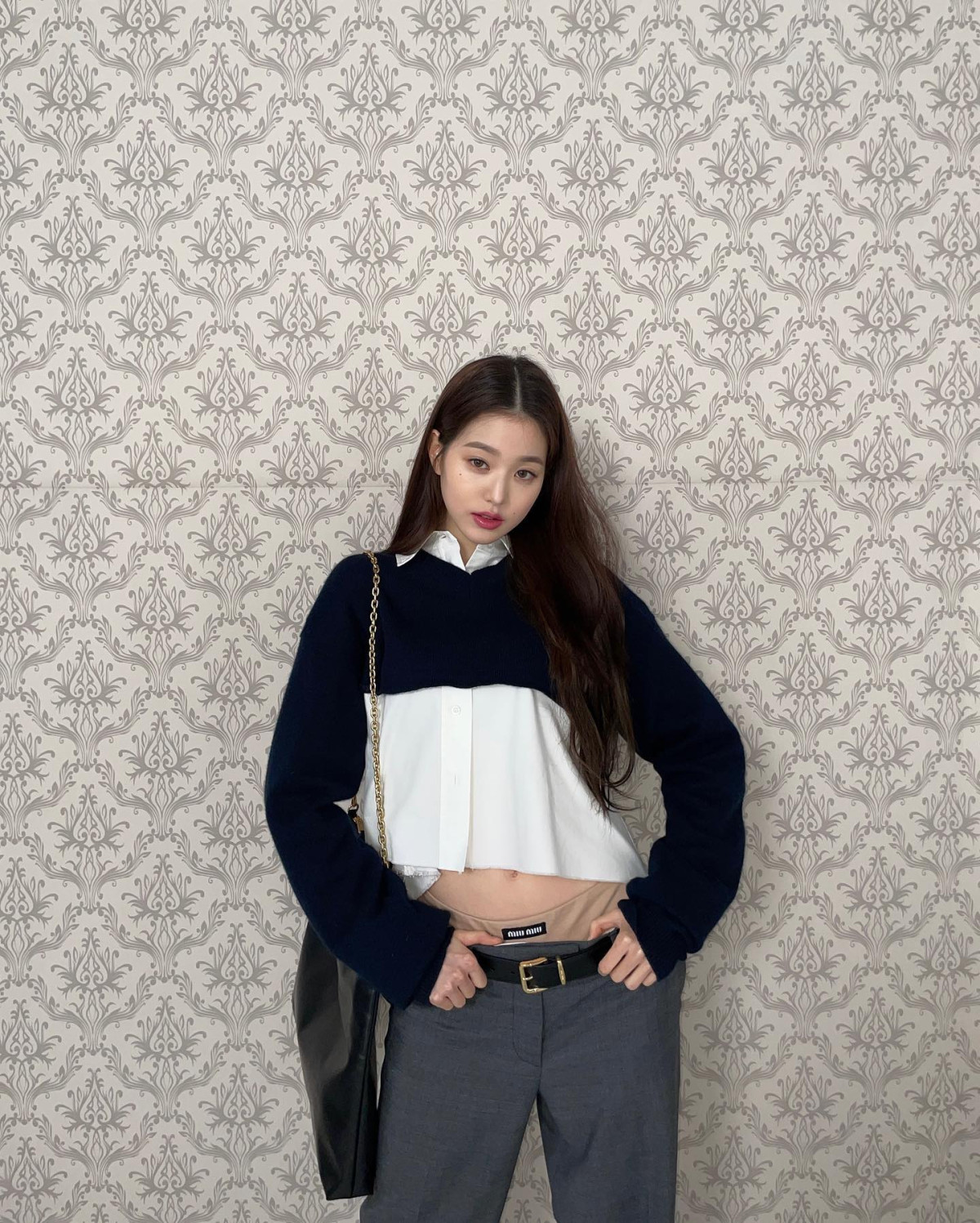 雖然不是Miu Miu的代言人,不過卻經常在個人Instagram幫Miu Miu宣傳的張員瑛,最近也穿上Miu Miu的低腰褲了!然而身材比例眾所皆知的好、擁有一雙大長腿的張員瑛,也難逃低腰褲的魔咒,有網友表示「第一次看到有張員瑛不適合的的衣服」。