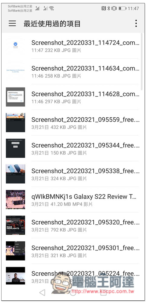 接著會打開最近使用過的項目,如果你只是要傳送單一檔案,就點一下該檔案,想一次傳送多個檔案,第一個請先長按: