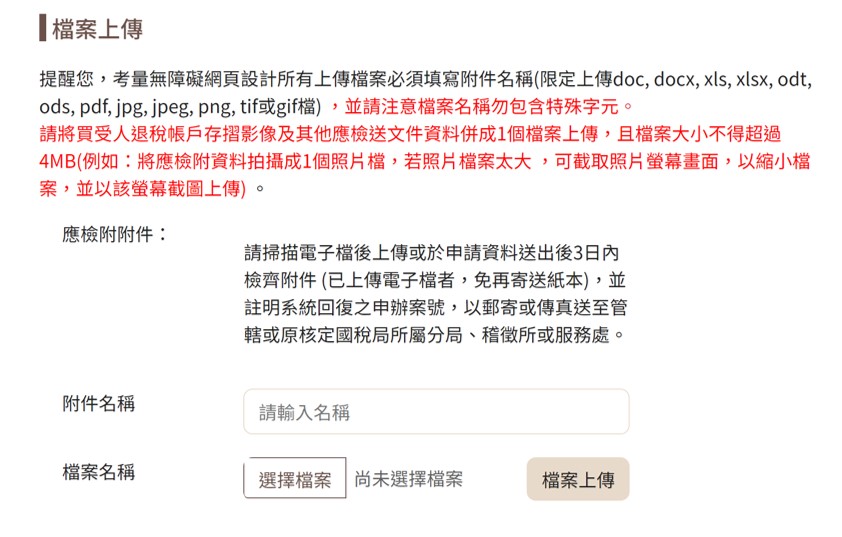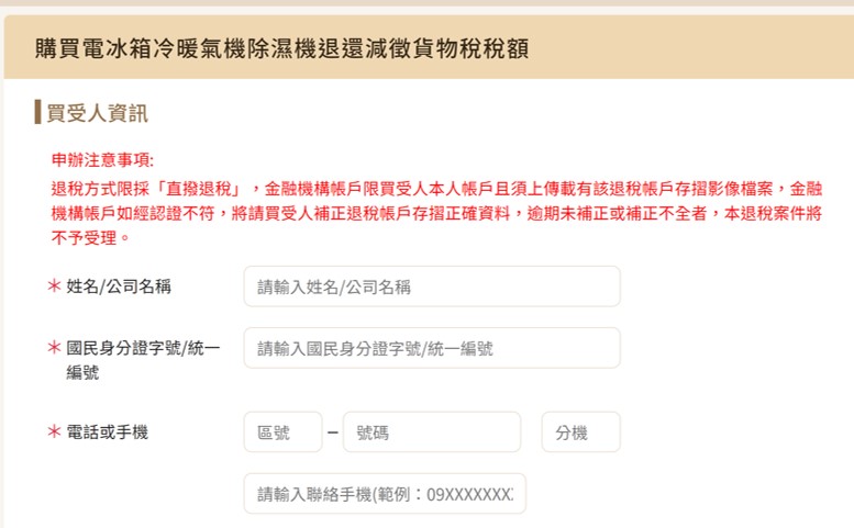 特別提醒,由於「簡化身分認證」申請的退稅金額將直接匯入用戶提供的銀行帳戶,請申請用戶請準備好退稅帳戶的存摺影像,並填入發票的開立期別、交易日期及號碼等。