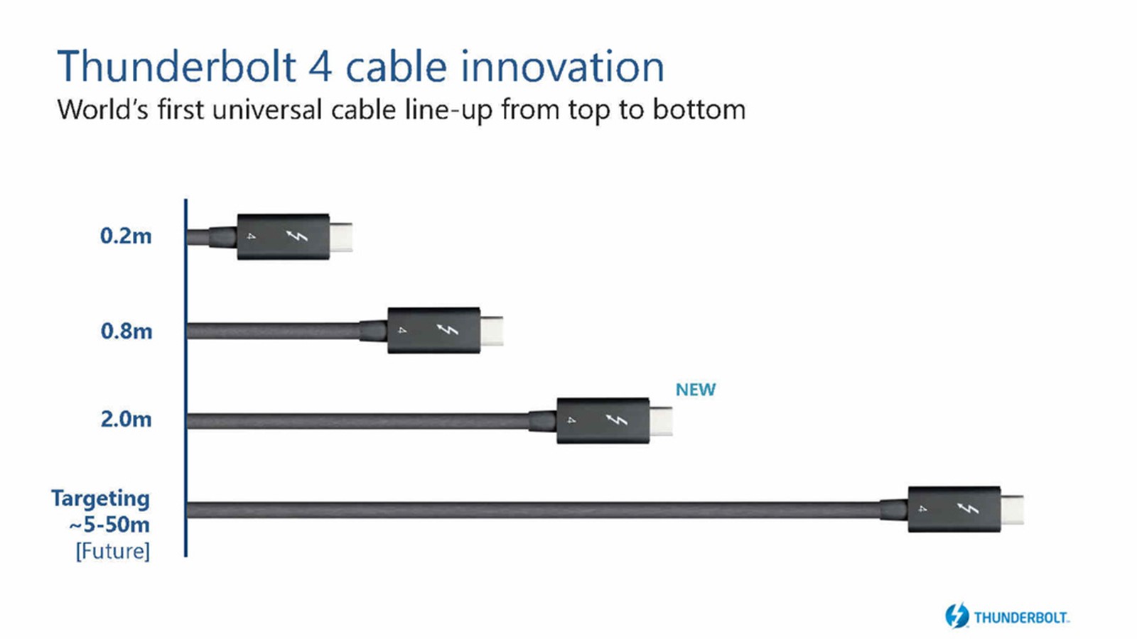 「一寸長一寸強」。由於Thunderbolt 4 可以同時支援2個4K螢幕或是1個8K螢幕,線越長就可以將配備第 11 代 Intel® Core™ 筆記型電腦或是Mac系列裝置在家當作電競桌電使用,對於需要多機使用的電競玩家而言,自然有投資升級的需求性。