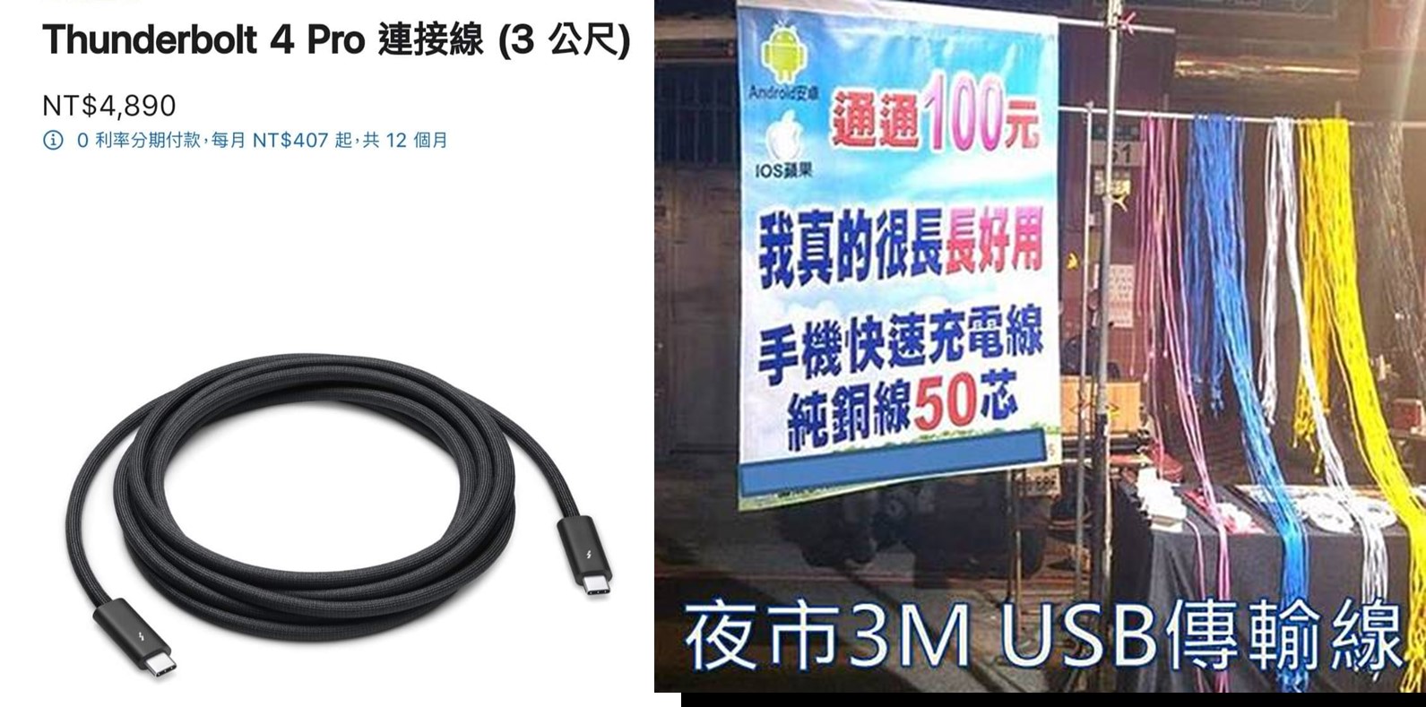 Apple推出的產品向來不便宜眾所皆知,不過把3公尺的Thunderbolt 4 Pro連接線與坊間要價上百元的一般手機傳輸線或甚至是夜市賣的$50 3公尺傳輸線拿來作類比又有點過於無知。為何Thunderbolt 4 Pro 3公尺連接線貴森森呢? Thunderbolt 4連接線與坊間手機傳輸線有什麼差異呢? 以下作一介紹: