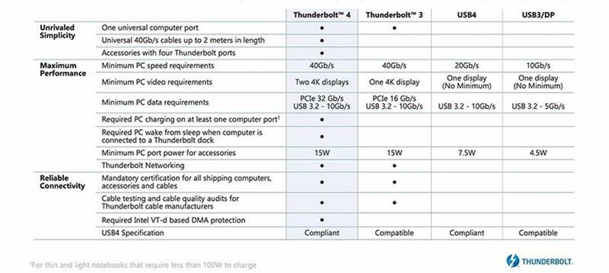 與 Thunderbolt 3 相比,Thunderbolt 4 有新增3個功能: