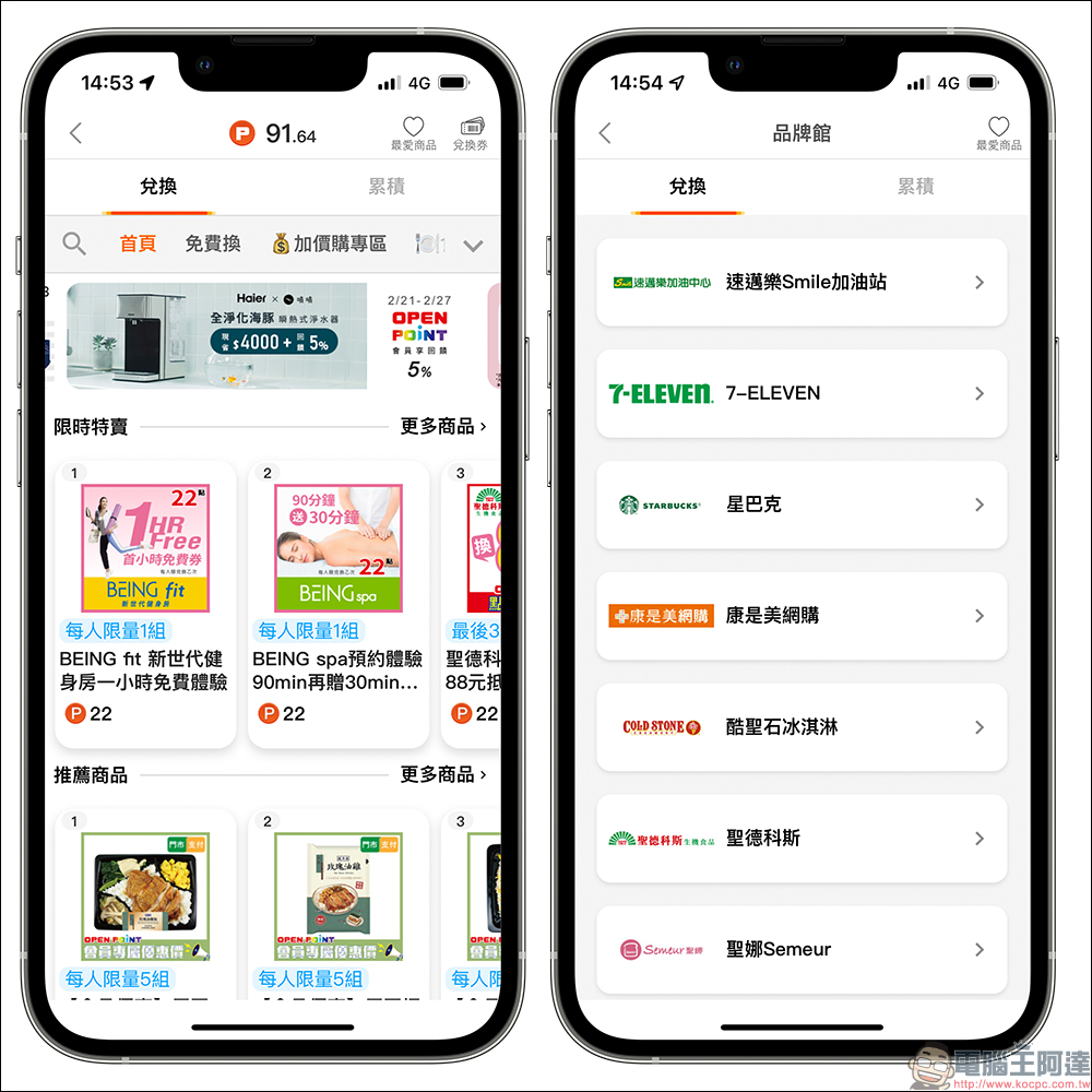 累積到 OPEN POINT 點數後,能在 OPEN POINT App 免費兌換許多通路的商品,從 7-ELEVEN、星巴克、康是美、Cold Stone 的商品都有。