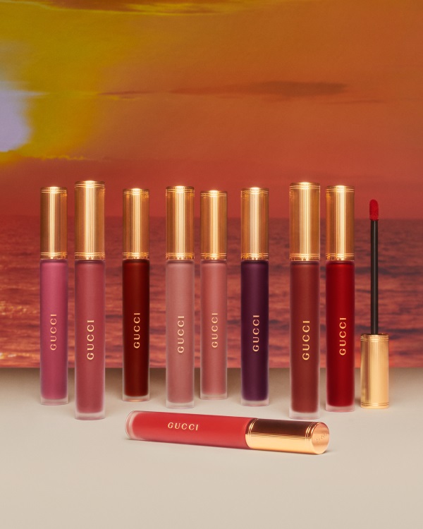 對於Gucci Beauty來說,唇膏不只是彩妝,更象徵著時尚造型的亮點配件!因此在品牌一直以來的唇彩設計上妳會發現,設計與手感是它最執著的美感堅持~今年延續暢銷全球的霧面唇膏系列,Gucci這次更將其最自豪的復古霧唇、玫瑰調色作為主角,打造全新傾色雲霧唇釉。傾色雲霧唇釉保有唇膏的霧面飽和度,卻又擁有奶霜般的暈染效果,以日落作為意象延伸出的9款唇色更皆以經典的長管磨砂包裝搭配金色的蓋子和字樣呈現,讓女孩們無論是上妝過程,又或者上完妝後,皆能享有穿上高級綢緞華服般的奢寵感受。