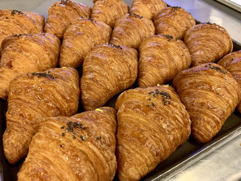 中秋節當然就是要吃鹹蛋黃口味的可頌!這次八月堂將特選鹹蛋黃流餡與蜂巢可頌散發的天然奶油清香,點綴黑芝麻襯托那濃郁鹹香口感,讓人愛不釋手鹹香濃郁的黃金流沙做成內餡,一口咬下還會爆漿,實在是太過癮了!每一口都給人滿足感,只能用非常幸福來形容啊~