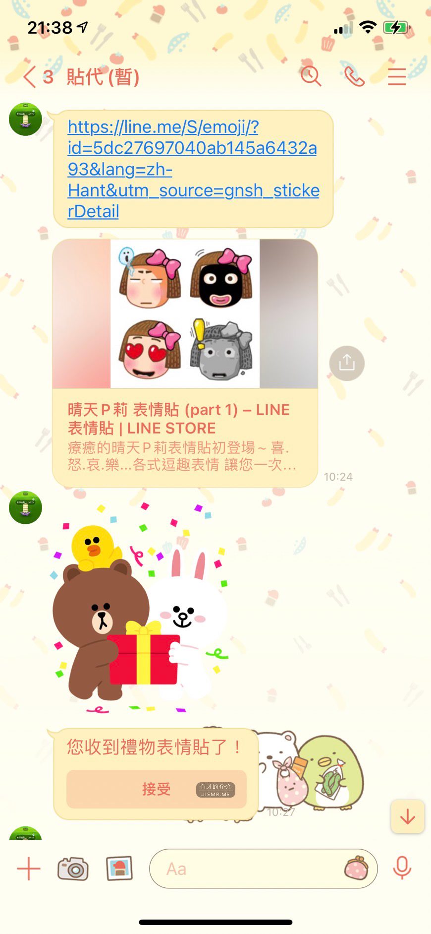 接受Line好友並收取Line貼圖禮物