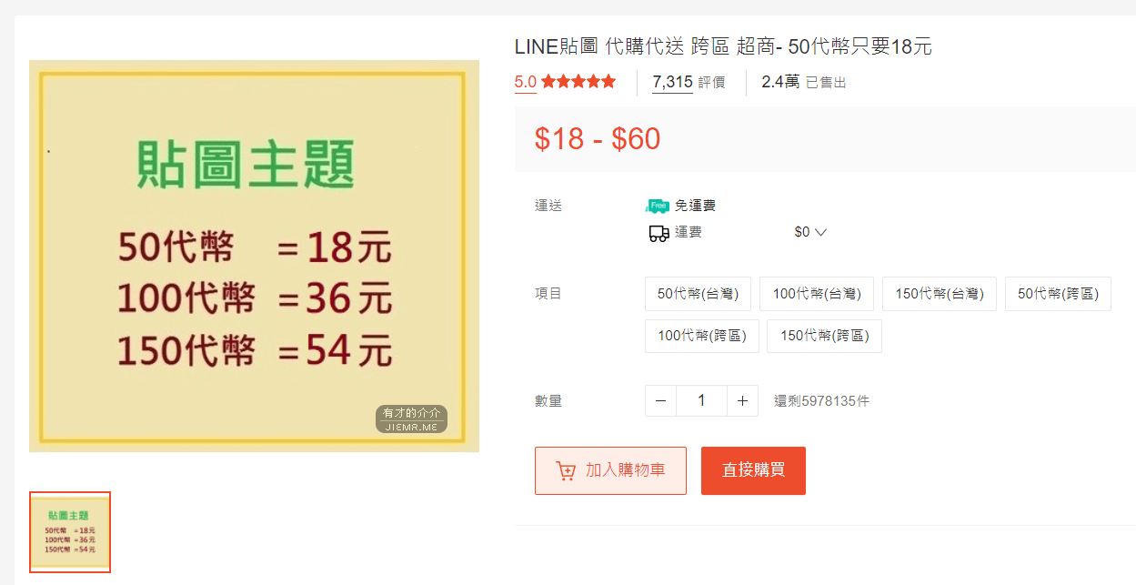 計價的方式是每50金幣下單一筆18元,若你要的貼圖金額是100金,只要下單18元的兩筆即可,多筆的好處是能加速升級蝦皮白金會員。
