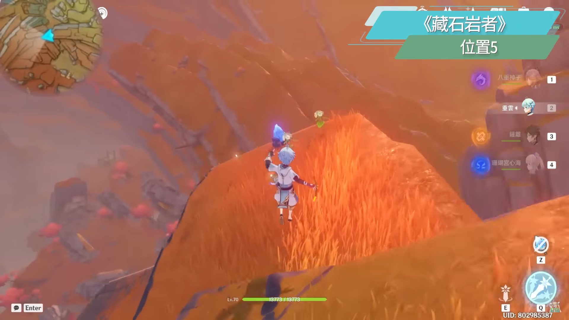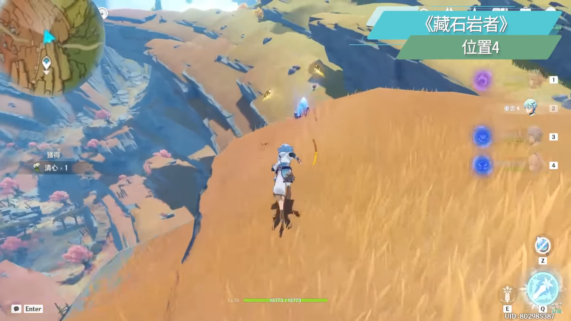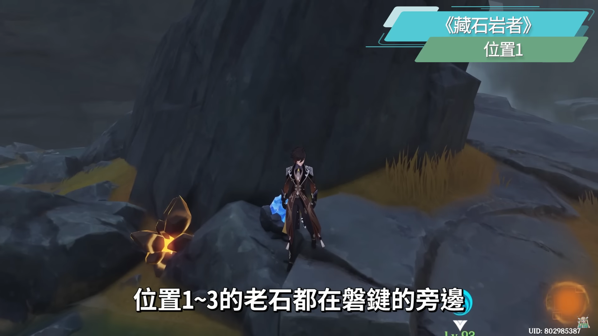非主線任務接觸到的老石都會在至高處的懸崖,所以即便參考HoYoLab的地圖點,還是可能要看一下實際影片位置在哪裡,位置4的老石可以從層岩起始點的傳送錨點傳送過來,往標點的位置爬到最高處的懸崖邊就可以找到老石。