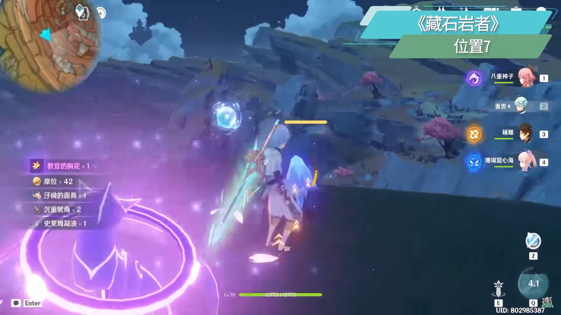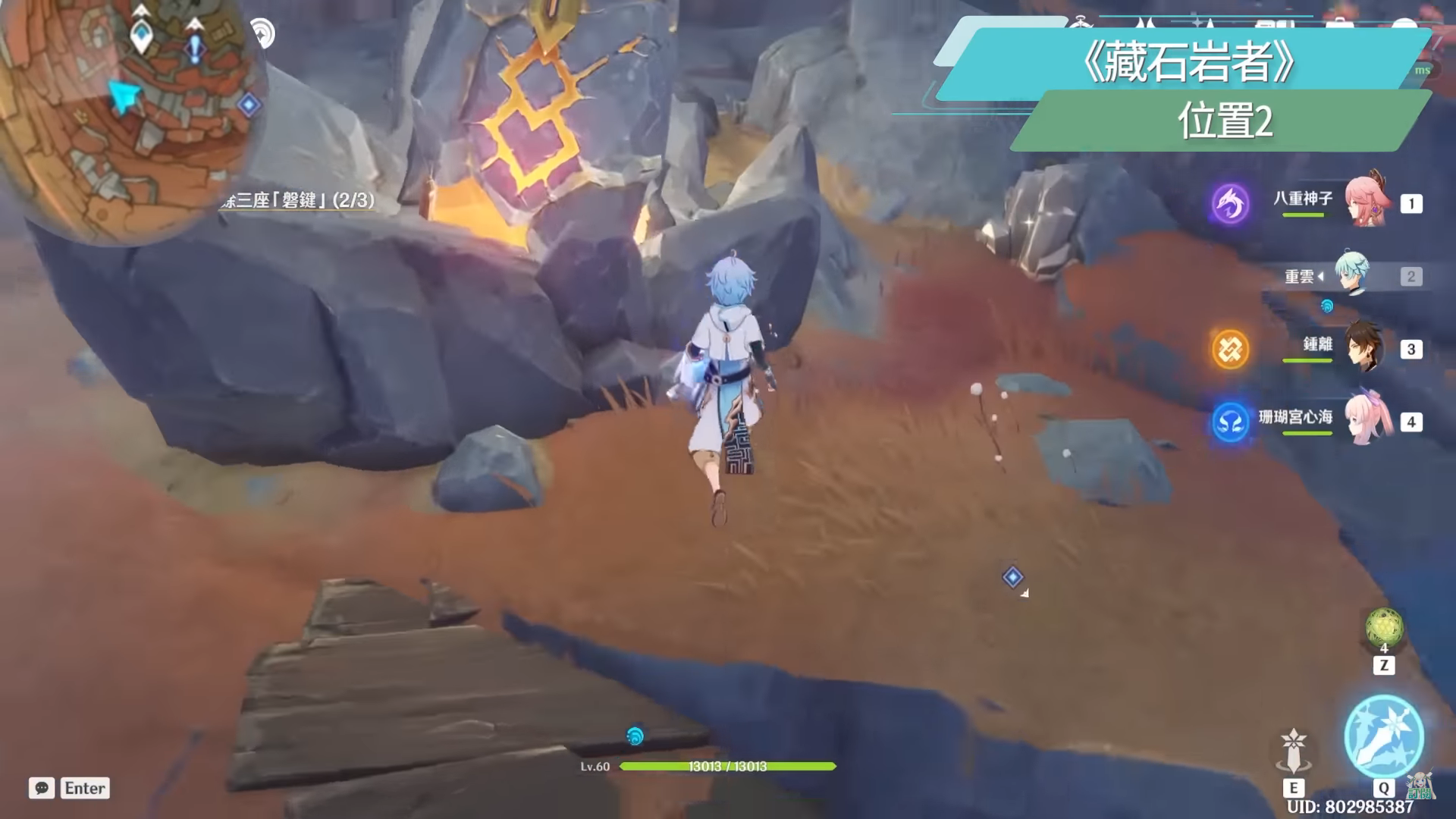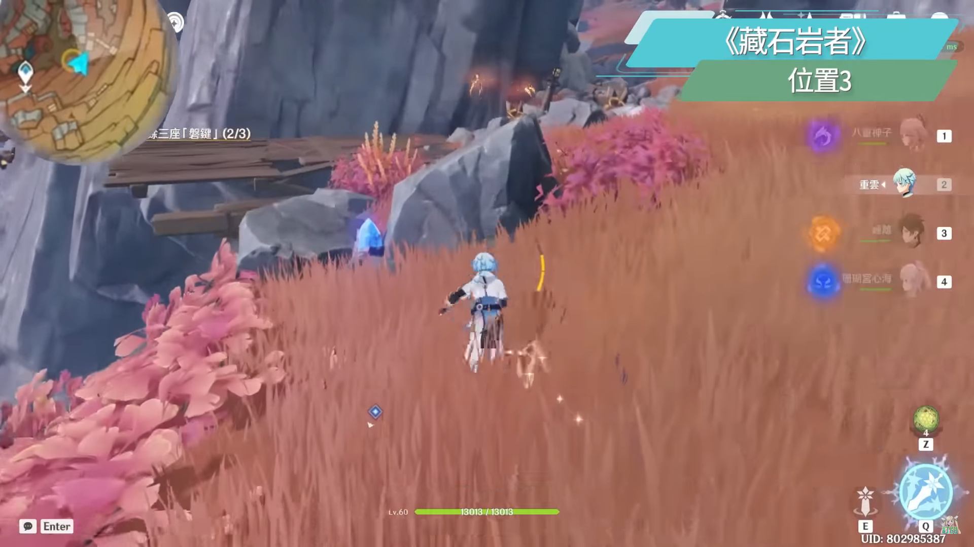 非主線任務接觸到的老石都會在至高處的懸崖,所以即便參考HoYoLab的地圖點,還是可能要看一下實際影片位置在哪裡,位置4的老石可以從層岩起始點的傳送錨點傳送過來,往標點的位置爬到最高處的懸崖邊就可以找到老石。