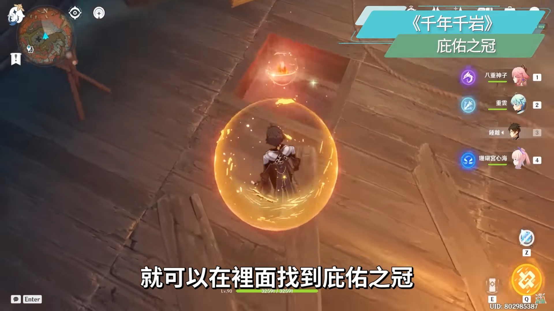 再來可以從地面礦區的傳送錨點傳過來,往標記處前進,這邊會有一間盜寶團駐守的木屋,木屋中也有一個紙條,有著關於庇佑之冠在這裡的提示,清理完後可以在木屋門口找到一隻仙靈,跟著仙靈走可以來到一處地下室,並獲得一個裝有5原石的精緻寶箱,最裡面的房間有一些炸藥筒和茅草堆,引爆點燃草堆後會發現一個凹陷處,就可以在裡面找到庇佑之冠,這時外面會有一個盜寶團頭目小輕策,出去可以跟他打一架,但沒有什麼獎勵就是了。