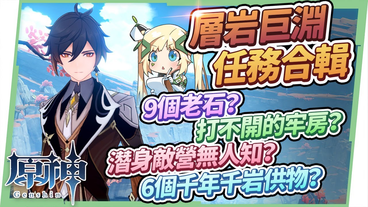 哈囉哈囉,我是虛擬Youtuber璐洛洛,這次要帶來的是在層岩巨淵的4個任務合輯,分別是:《藏石岩者》、《潛身敵營無人知》、《岩巔大俠的往事》、《千年千岩》,由於這些任務比較簡短或是具備連貫性,因此洛洛就把這些任務放在一起,全部一次跟著解完大約花費1~2小時左右,也可以拿到不少原石、寶箱和成就,其中也會關係到層岩巨淵地下礦區一個找不到鑰匙開的牢房,以及一個踩地雷的三個寶箱獎勵,若是你剛好還沒有解或是想要檢查還有漏掉什麼細節的話,就趕快跟著洛洛的影片來看吧!影片開始前,若你還沒有訂閱洛洛的頻道的話,記得先訂閱一下唷!