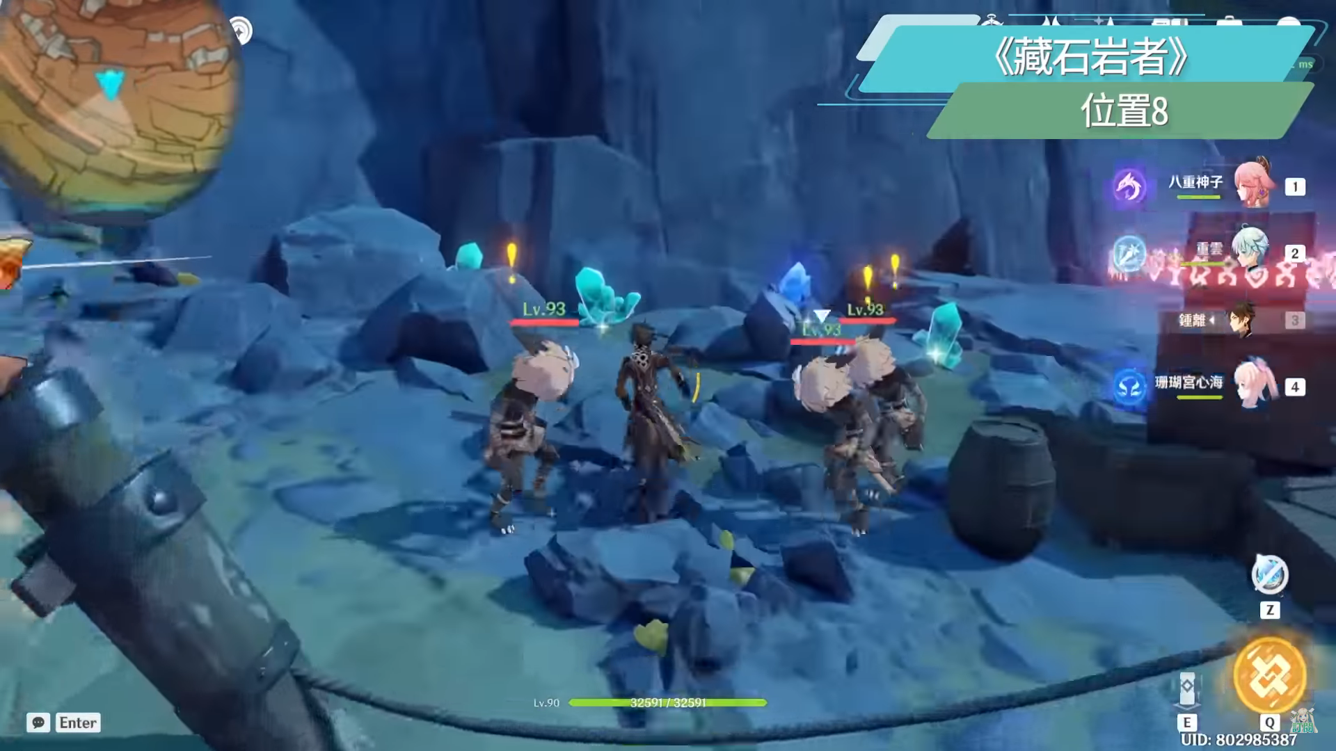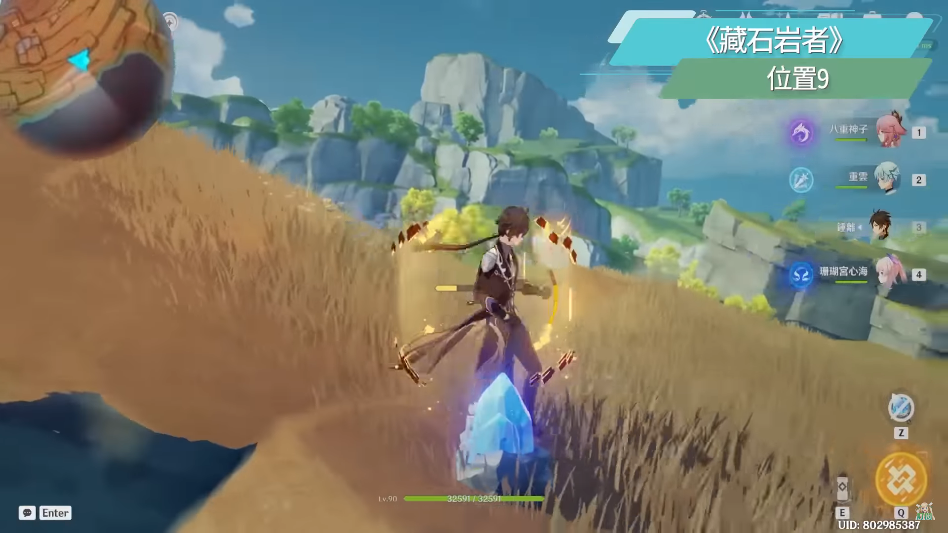 位置8的老石可以拿完位置7的老石後直接從那邊飛過來,可以看到有丘丘人在旁邊的一處礦堆中找到老石。