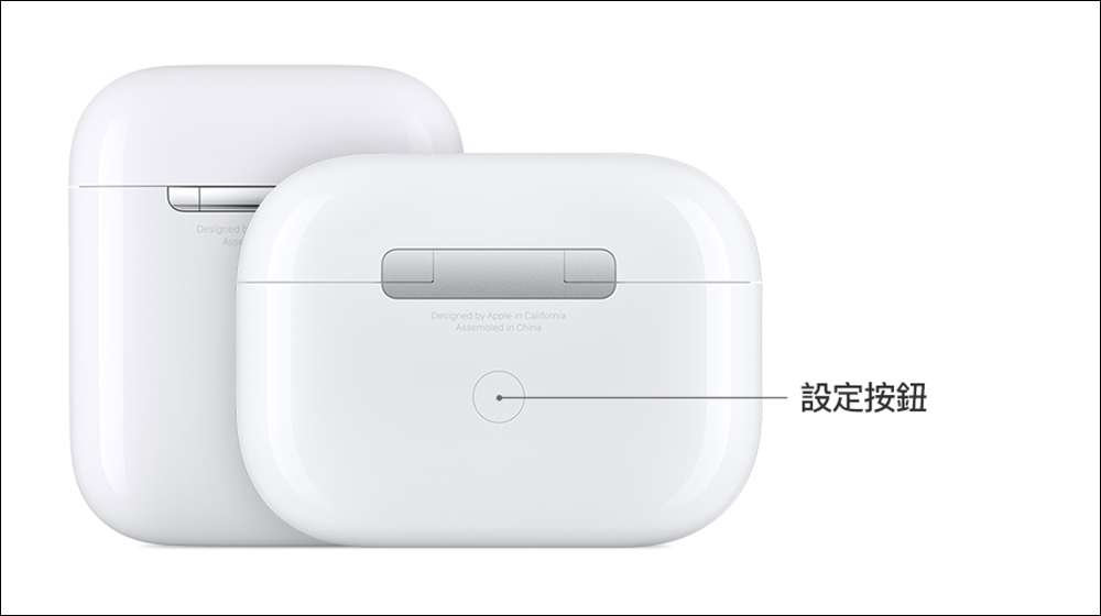接著除保持 AirPods 充電盒為開啟狀態,按住充電盒背面的設定按鈕直到只是燈閃爍琥珀色後,接著閃爍白色燈號。