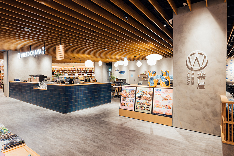 此外,大家最受矚目的美食部分,旗下自有品牌「WIRED CHAYA 茶屋」將美食、甜點及閱讀三項合一。並延續台灣其他分店以傳統精神「一汁三菜」為基礎加入創意及美味的經典菜色,開發多款獨家菜單,像是提供給孩子日系漢堡排、天婦羅烏龍麵及炸蝦可樂餅兒童套餐等。更推出全球首座外帶咖啡吧檯,主打甜甜圈鬆餅義式冰淇淋,純米製作搭配義式香草冰淇淋。