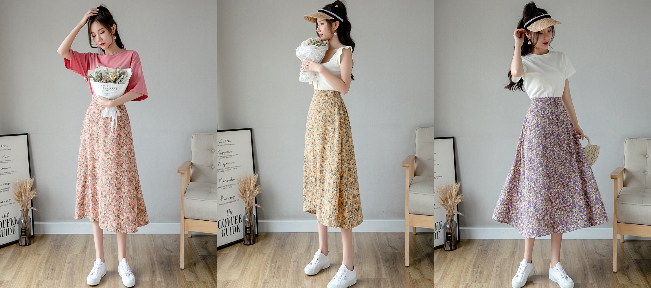 雪紡A字裙怎能少了小碎花,這類裙子真的是不管哪種身高的人來穿都很適合耶!小個子穿的時候可以穿稍微高跟一點的鞋子,增加腿長比例;高個子穿就直接搭上百搭的小白鞋即可。而且小碎花裙子顏色、花色超多,選購的時候只要挑選適合自己膚色的花色即可,不然絕對買不完呀!