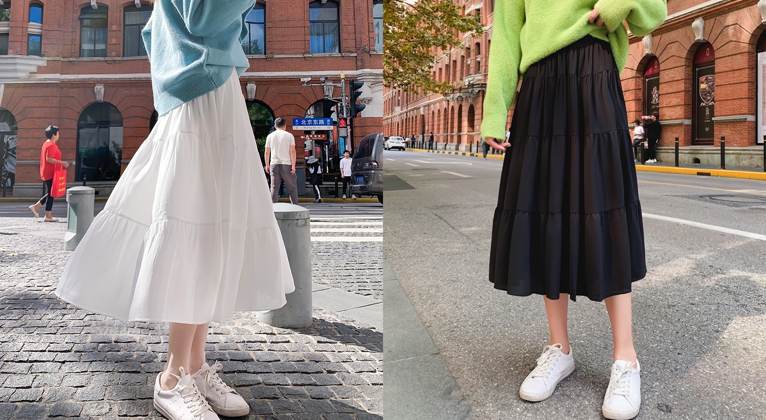 A字裙推薦二:浪漫雪紡蛋糕中長款A字裙