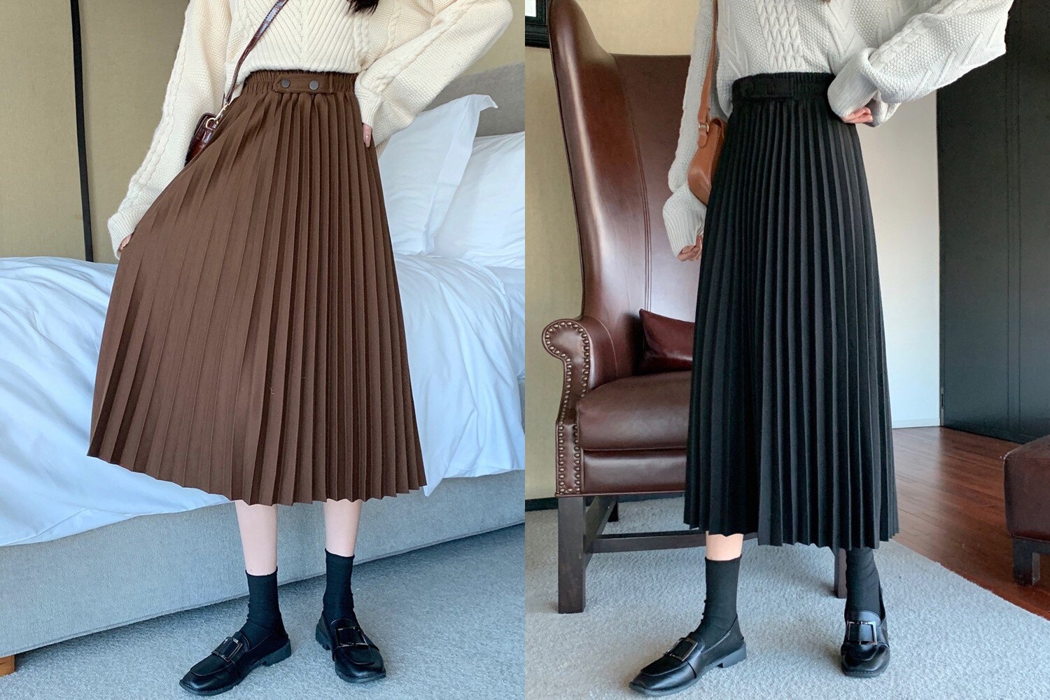 百褶A字裙不再是學生妹的專利,各式各樣的百褶A字裙讓你就算畢業出了社會也能享受學生風格的穿搭,而且比起校服,市售的百褶裙樣式更美,在穿搭的變化上也更多元,上半身搭上不一樣的單品就會有不同樣貌。想要正式一點就可以穿針織或襯衫類的單品,想要休閒一點就可以穿上休閒T恤或者帽T。