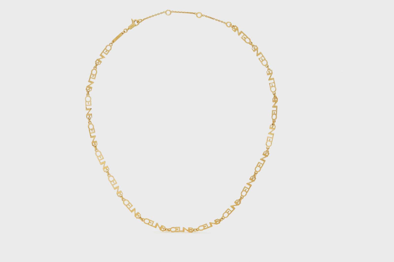 這條細窄的金屬短項鍊乍看之下平凡無奇,但如果仔細一看會發現它是用無數個Celine字樣英文金屬Logo串接在一起。整體長度剛好落在鎖骨處能完美展現纖細頸部線條,可透過疊戴在黑白色T恤外面增加層次感,用法國女人一貫的低調手法展現時尚態度。(售價:30,500元)