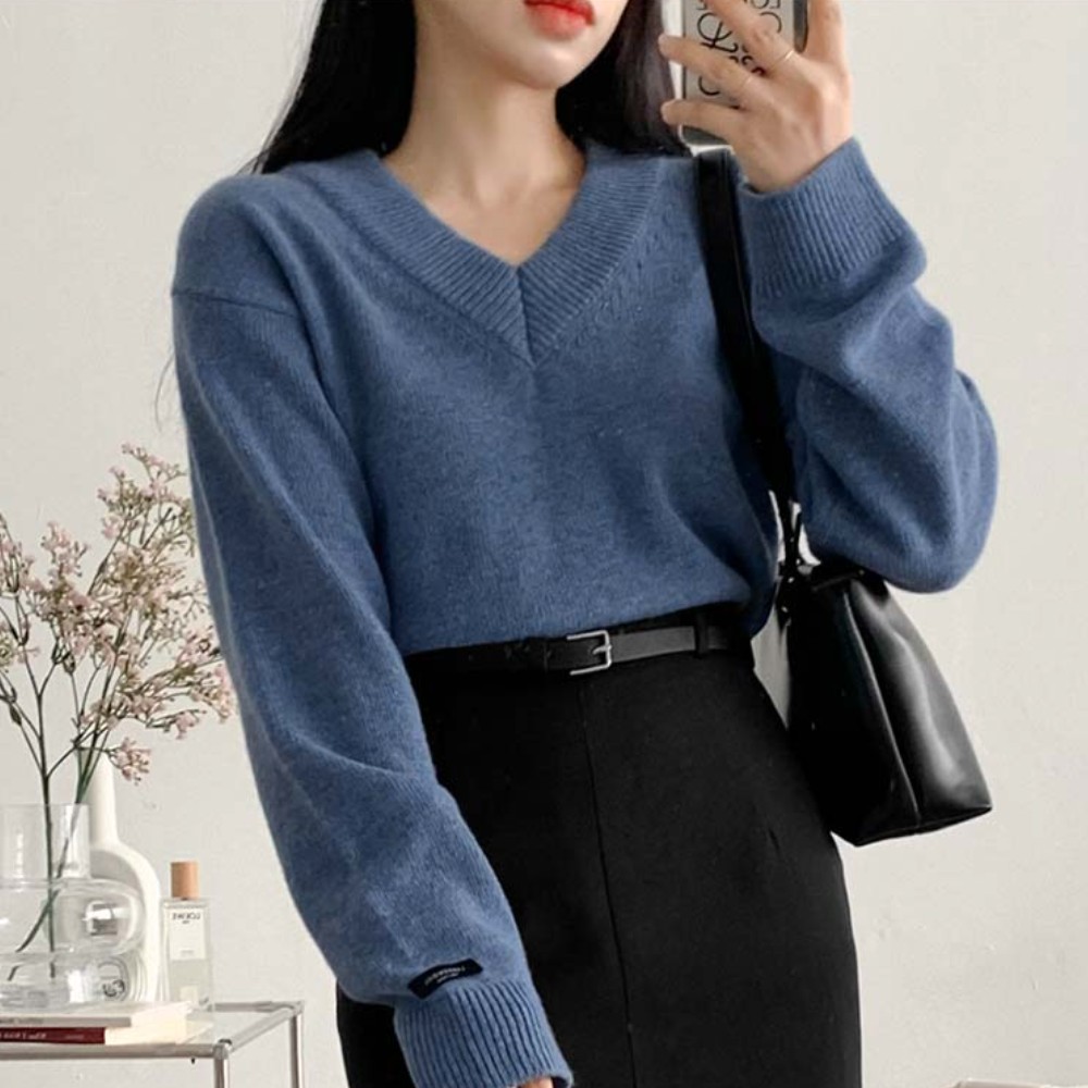AWAB 的針織上衣擁有修飾臉部線條的V領設計,以及顯腿長的短版剪裁,讓各位在冬日依然能展現完美的身材比例,不論是搭配褲裝、裙裝,或是套在洋裝外打造多層次穿搭皆非常適合。最棒的是,它擁有豐富的顏色供選擇,而小編最推薦的便是圖中優雅又耐看的霧霾藍囉~