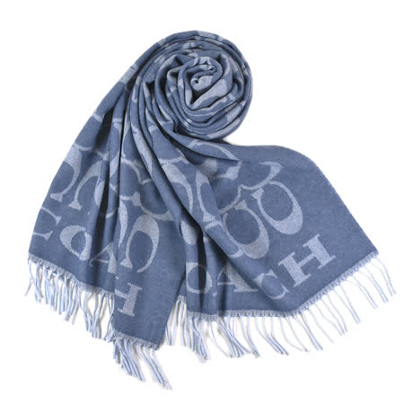 單品推薦2:COACH 緹花LOGO雙面用羊毛圍巾 單寧藍
