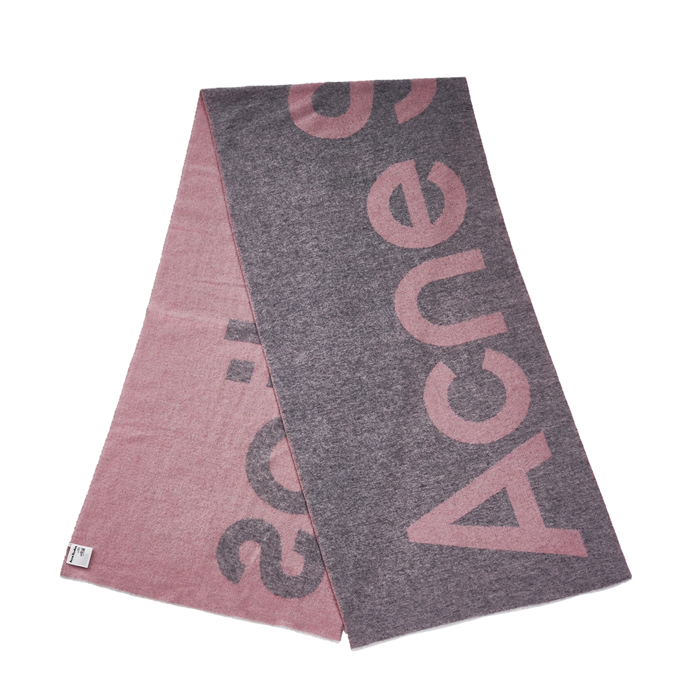 單品推薦3:Acne Studios 羊毛混紡字母logo 雙面圍巾 (粉紅/灰)
