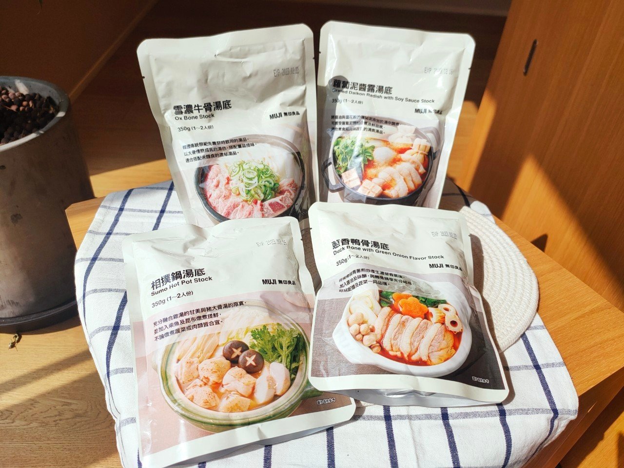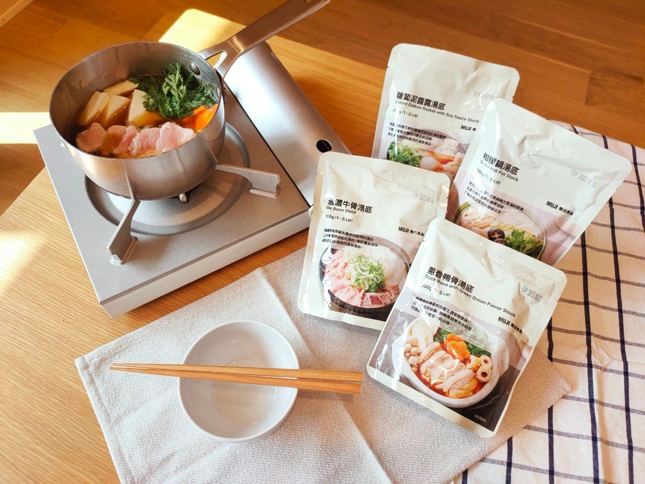 以往都只有出沖泡湯塊和調理包的「MUJI 無印良品」,這次為了各位愛吃鍋的粉絲們,特別推出了4款不同風味的湯底,有別於市面上的湯底份量,MUJI無印良品的4款火鍋湯底每一個都是1到2人份的小包裝,單人料理也超方便!深夜突然想吃宵夜或野外露營,直接煮飯或加入麵條,都可快速的讓美味料理立即上桌。