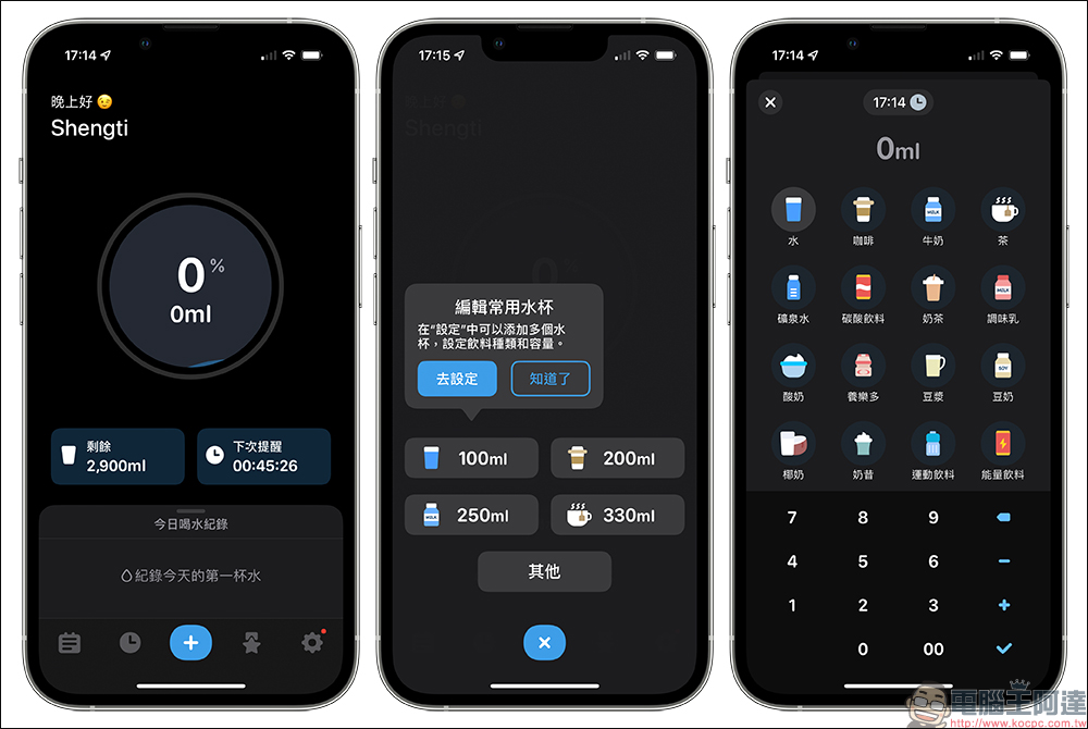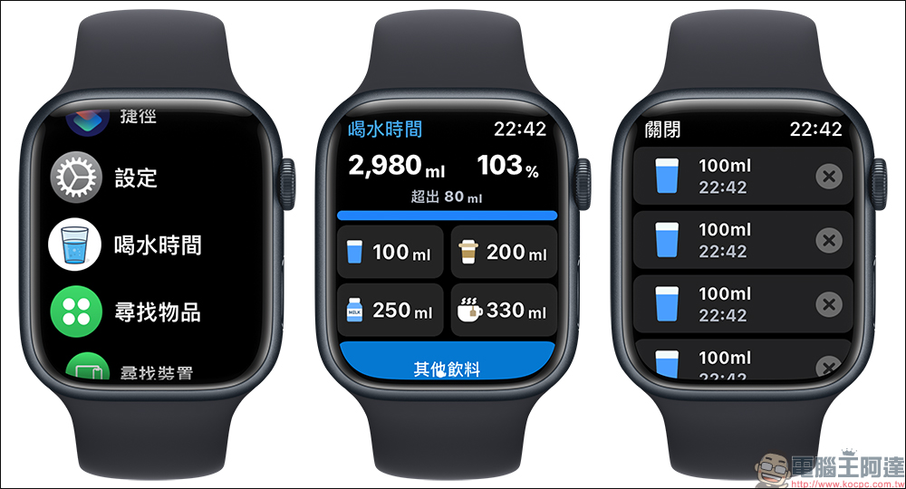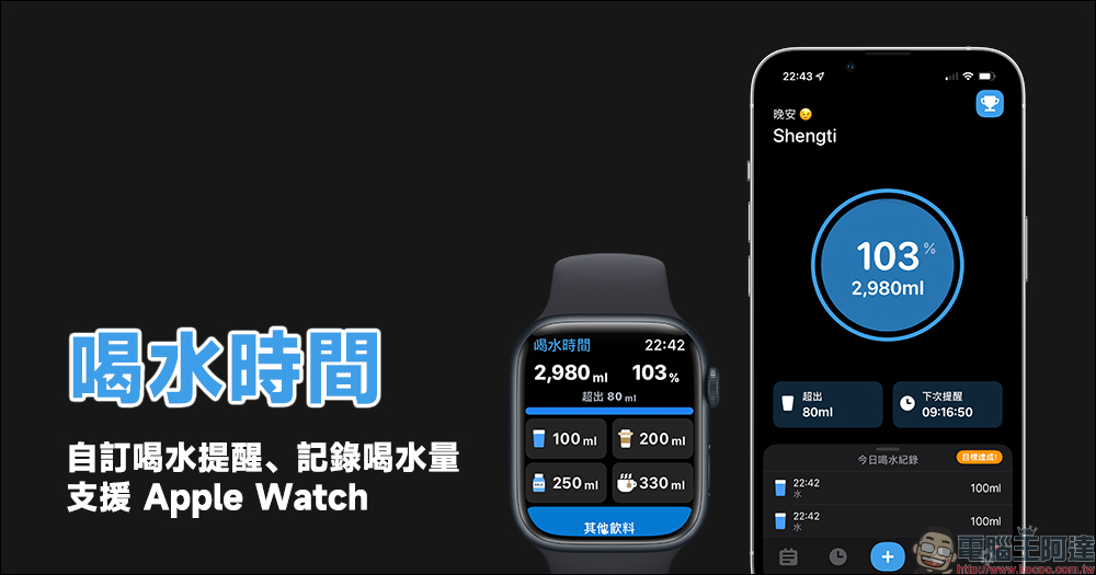 喝水時間 App ,自訂喝水提醒、記錄喝水量與 Apple Watch