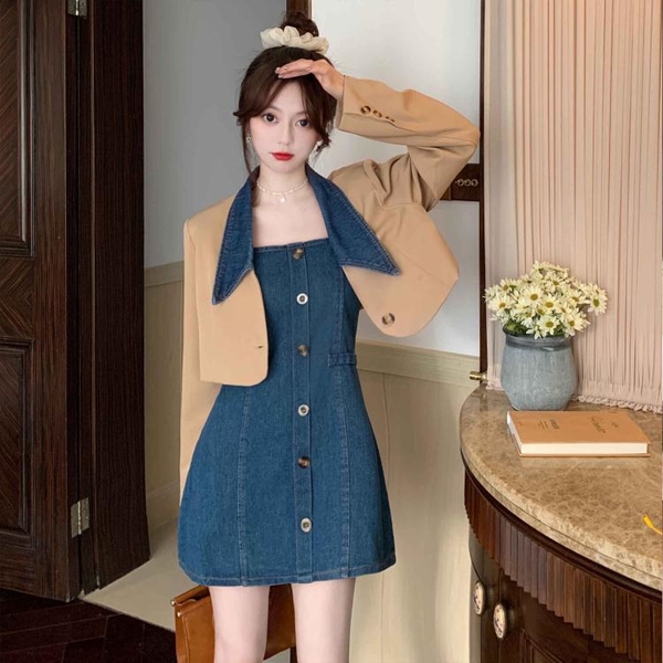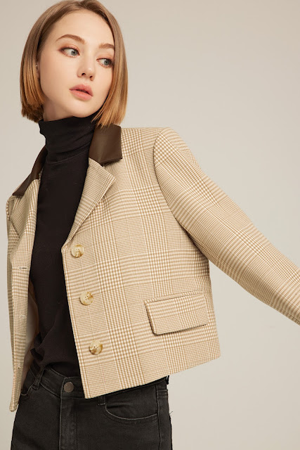 復古短款拼接西裝外套擁有知性的奶茶色與幹練的黑色可以選擇,西裝的硬挺版型加上牛仔的立領拼接設計,讓人氣質中帶點可愛的俏皮感,不管平常上班還是假日約會穿搭都很適合。短版的設計,還能帶動視覺效果,讓人整體看起來更加修長纖細,不論是搭配短褲,還是一件式的小洋裝都很有型。