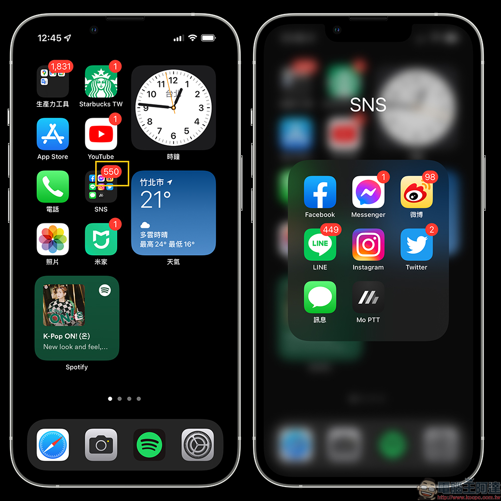 但如果一個應用程式檔案夾內囊括眾多的 App ,要快速找到有未讀通知的 App 也得花費不少時間,是否有方法可以快速開啟、消滅它呢?