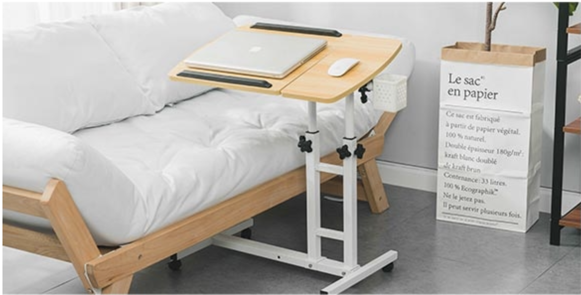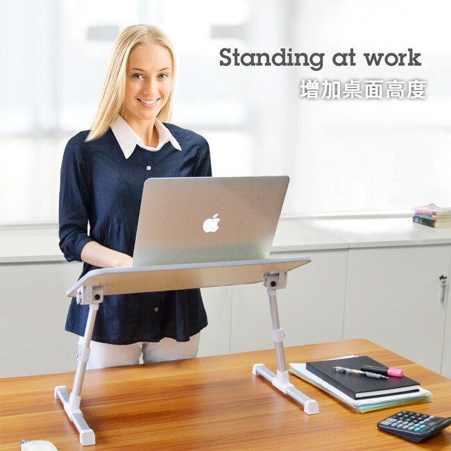 上班族久坐其實對身體健康不好,這款移動桌的好處就是可以直接放在桌上,可以適時的站著工作。在家裡可以放在床上,或是沙發上都可以,不用顧慮傢俱的高度。桌子高度和桌板都可以調整,不使用時也可以折疊收納起來,算是CP值相當高的移動桌。
