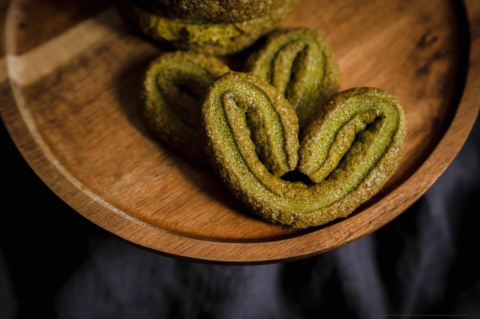 使用法國無鹽發酵奶油、日清麵粉,加上糖、鹽與水的悉心調配出宇治抺茶蝴蝶酥,一口咬下後的空氣感—酥、鬆、薄、脆,讓人欲罷不能!微微的苦卻不澀,抹茶長留的清香尾韻提升了蝴蝶酥的層次,讓整體口感富有滿滿的大人味,適合喜歡甜食卻不愛甜膩的你!