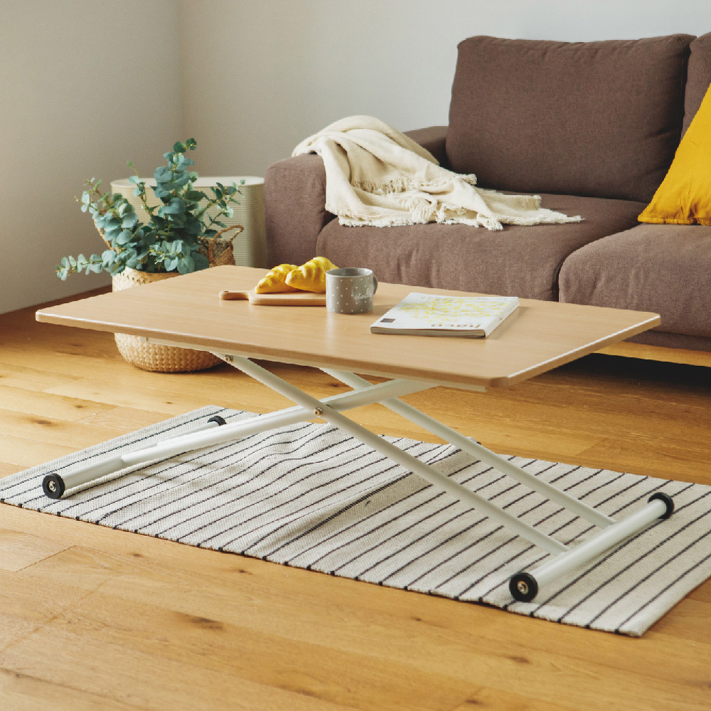 不同於一般茶几只能固定高度,這款茶几是無階段氣壓式升降桌,能夠緩升緩降。採用台灣製氣壓棒,能夠根據需求自由調整高度,交叉結構椅腳設計,穩固又耐用。因為能夠升降,所以不管是搭配沙發、高腳椅,或是和室椅墊,都很適合唷!