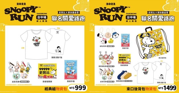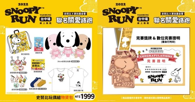 路跑還能做公益,妞妞們報名截止後,每報名一位參賽者,主辦單位將會提撥「100元」捐款給家扶基金會,除此之外,在粉專將會舉辦史努比相關的抽獎活動,像是「史努比房住宿卷」和「史努比商品折扣卷」等,喜歡SNOOPY的大家千萬不要錯過喔!