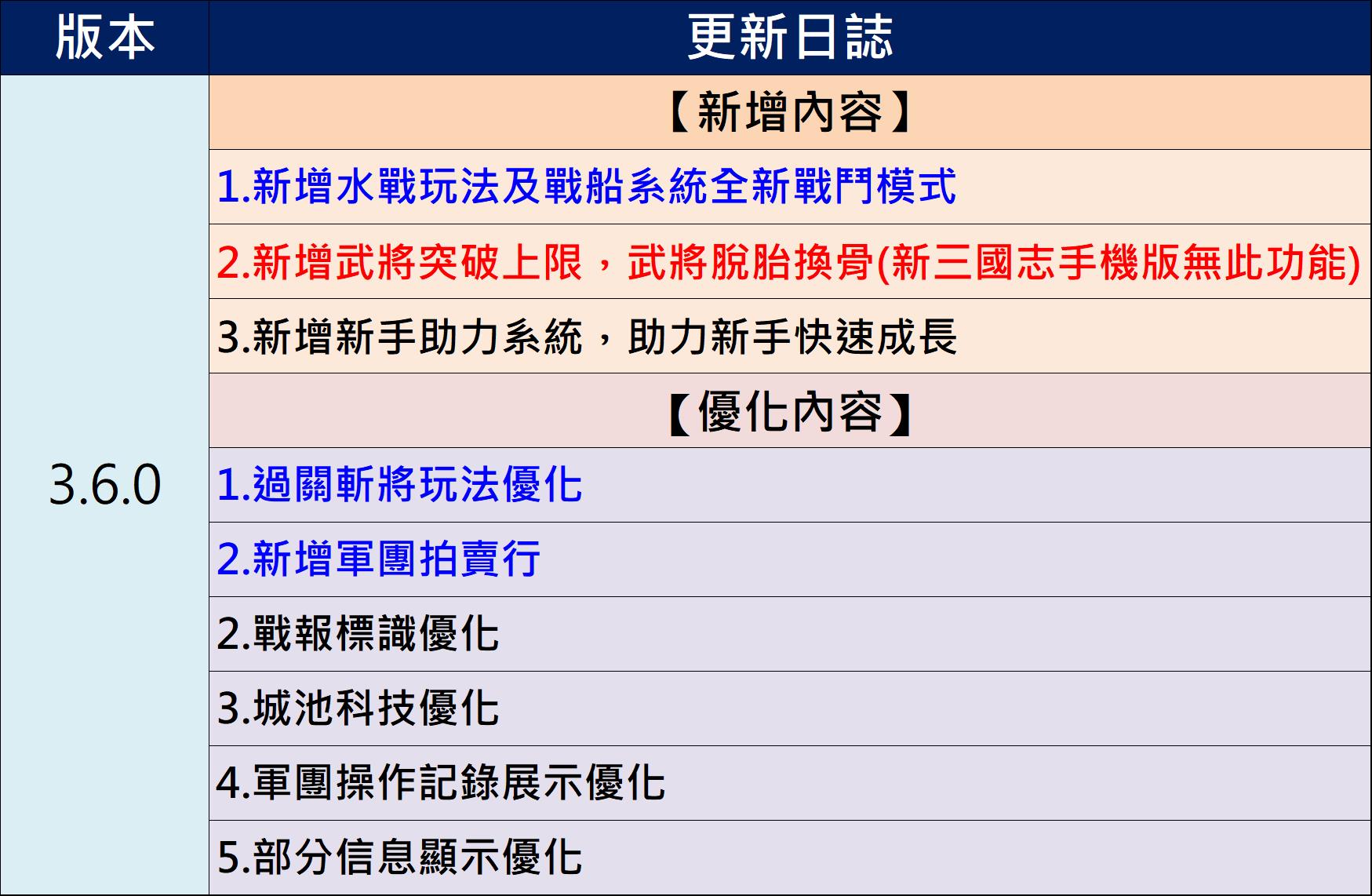 新三國志手機版3.6版改版哪些內容呢? 以下作一整理: