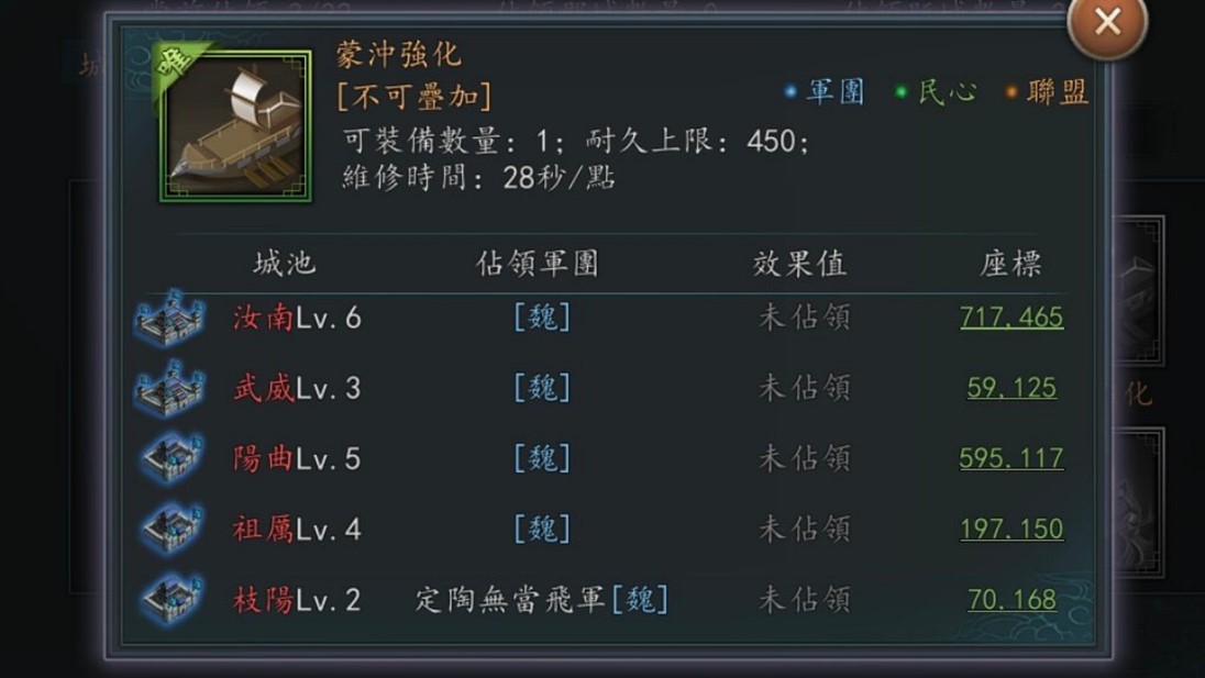 新改版後,若要攻佔特定的郡城,必須先占領港口後,才可進入對應郡。