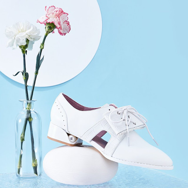 推薦4. 小圓頭珍珠蝴蝶結鏤空牛津鞋