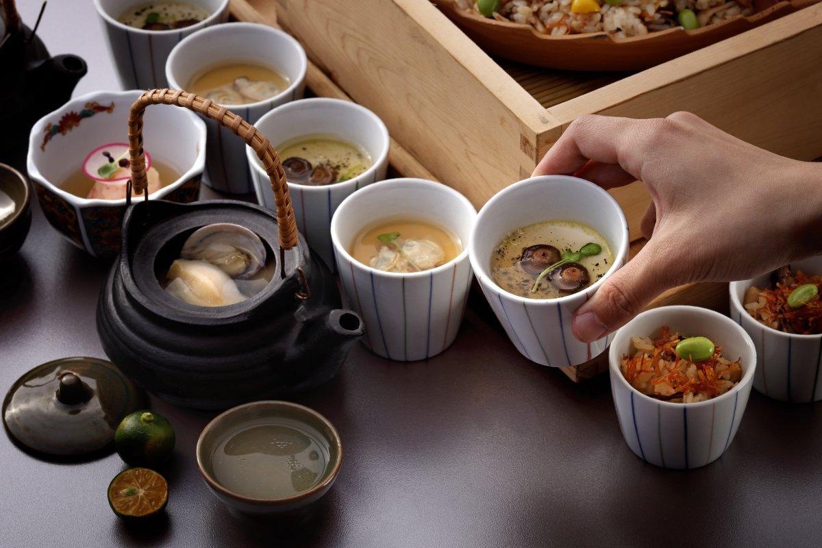 NAGOMI的美學講究不僅⽌於空間,連餐檯上的裝盛器⽫,超過6成以上來⾃⽇本進 ⼝。燒烤區鐵盤、鐵鍋是⽇本南部鐵器,⽽煮物則有萬古燒砂鍋的蹤影、⼩缽冷菜等器⽫是來⾃名古屋伊萬⾥燒、有⽥燒,這些傳遞著料理溫度的⽇本⼯藝不只在於質感,就連尺⼨也⼒求完美,每⼀個器⽫每回供應的料理約6、7⼈份,夾完就得換新,讓這些餐點不只是美觀,更有新鮮、不久放的美味保證。