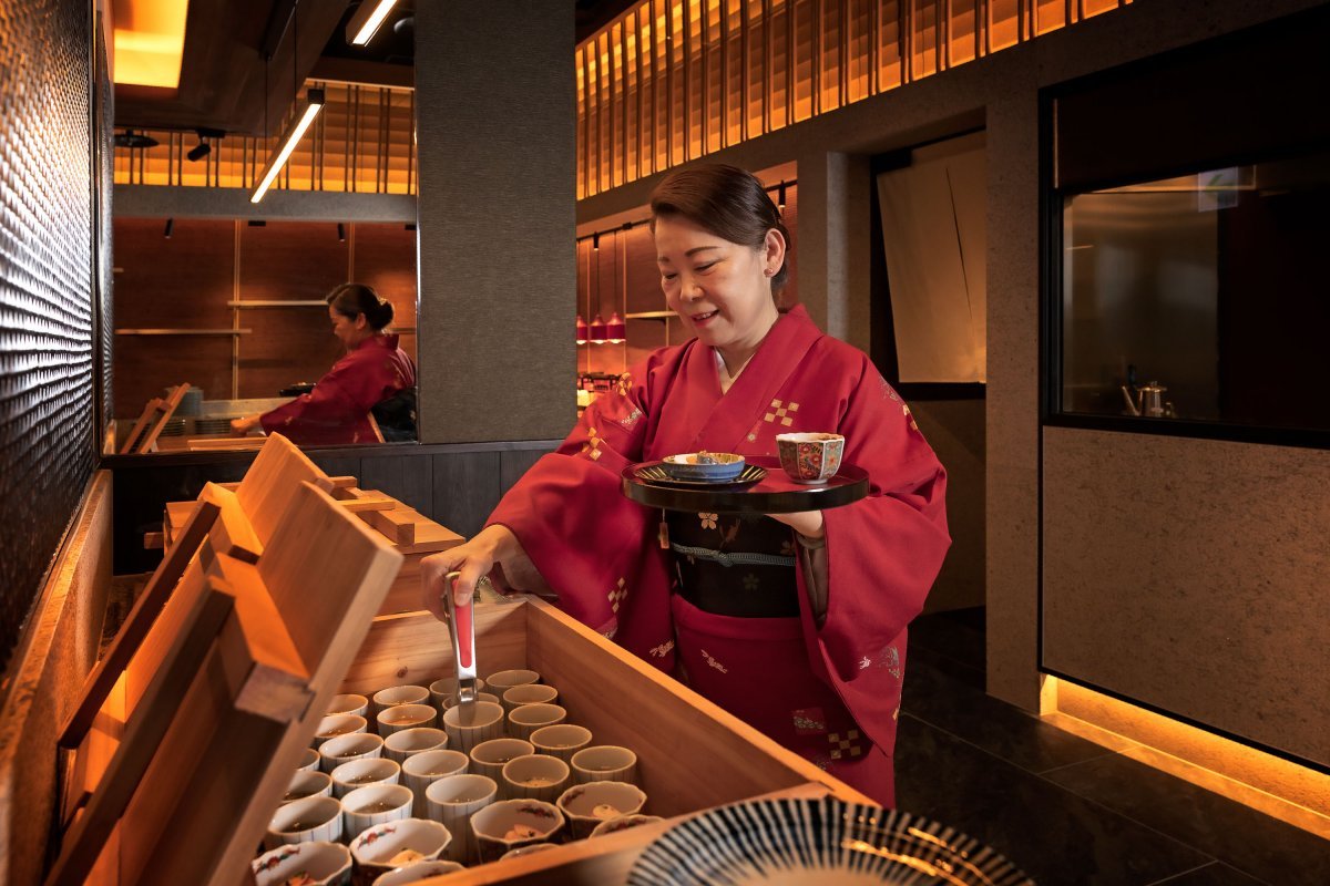 這真的不是來到日本嗎?!「NAGOMI」⾸創台灣業界導⼊「⽇本⼥將⽂化」,由曾任職知名⽇式溫泉飯店的專職經理帶領團隊並訓練外場服務⼈員,從打招呼、 迎賓、謝客等不同鞠躬⾓度的細節,到⾏⾛步伐的美姿美儀、說話聲調等訓練,貫徹⽇式「款待之⼼ おもてなし」服務。