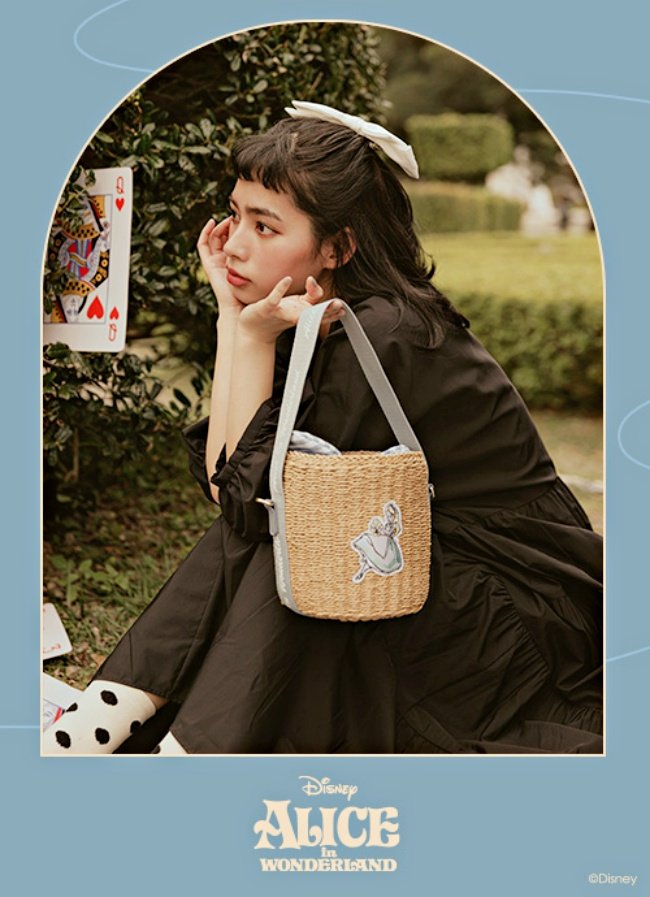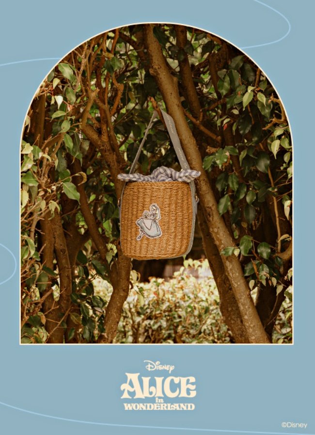 另一款聯名水桶包,則是結合度假感藤編、鄉村風格紋內裡,再加上愛麗絲的圖樣點綴,出遊一顆馬上就是最美的時髦小姊姊。(已經在4月13日開賣囉)