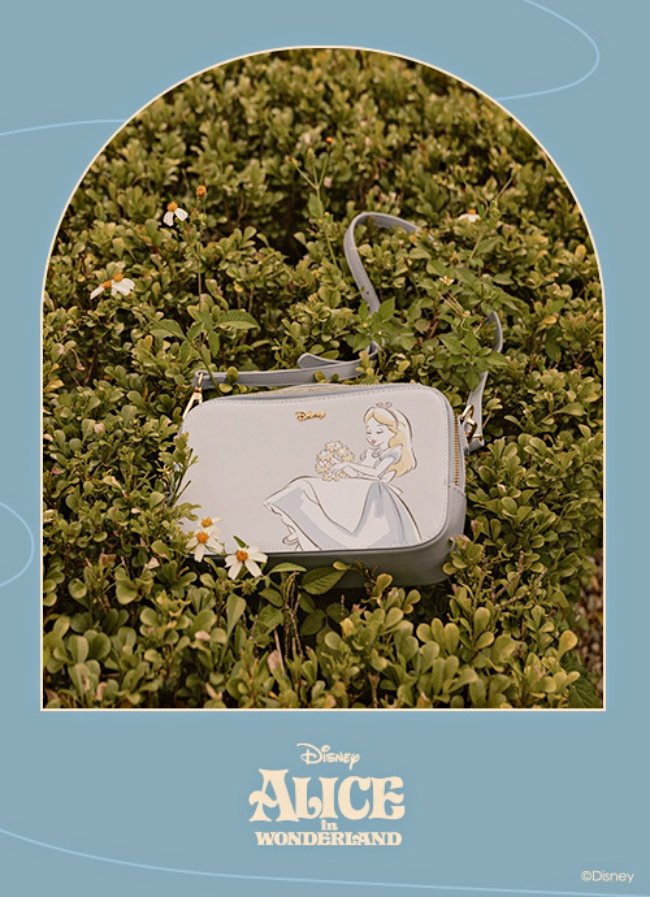 想來一場瘋狂下午茶聚會?想跟白兔先生、柴郡貓來場夢境冒險?台灣品牌Grace Gift與《愛麗絲漫遊奇境(Alice's Adventures in Wonderland)》聯手的2款美包絕對要收!一款以愛麗絲為主題的小方包,從包面到背帶都以「愛麗絲的招牌洋裝藍色」打造,超適合約會場合揹出場。