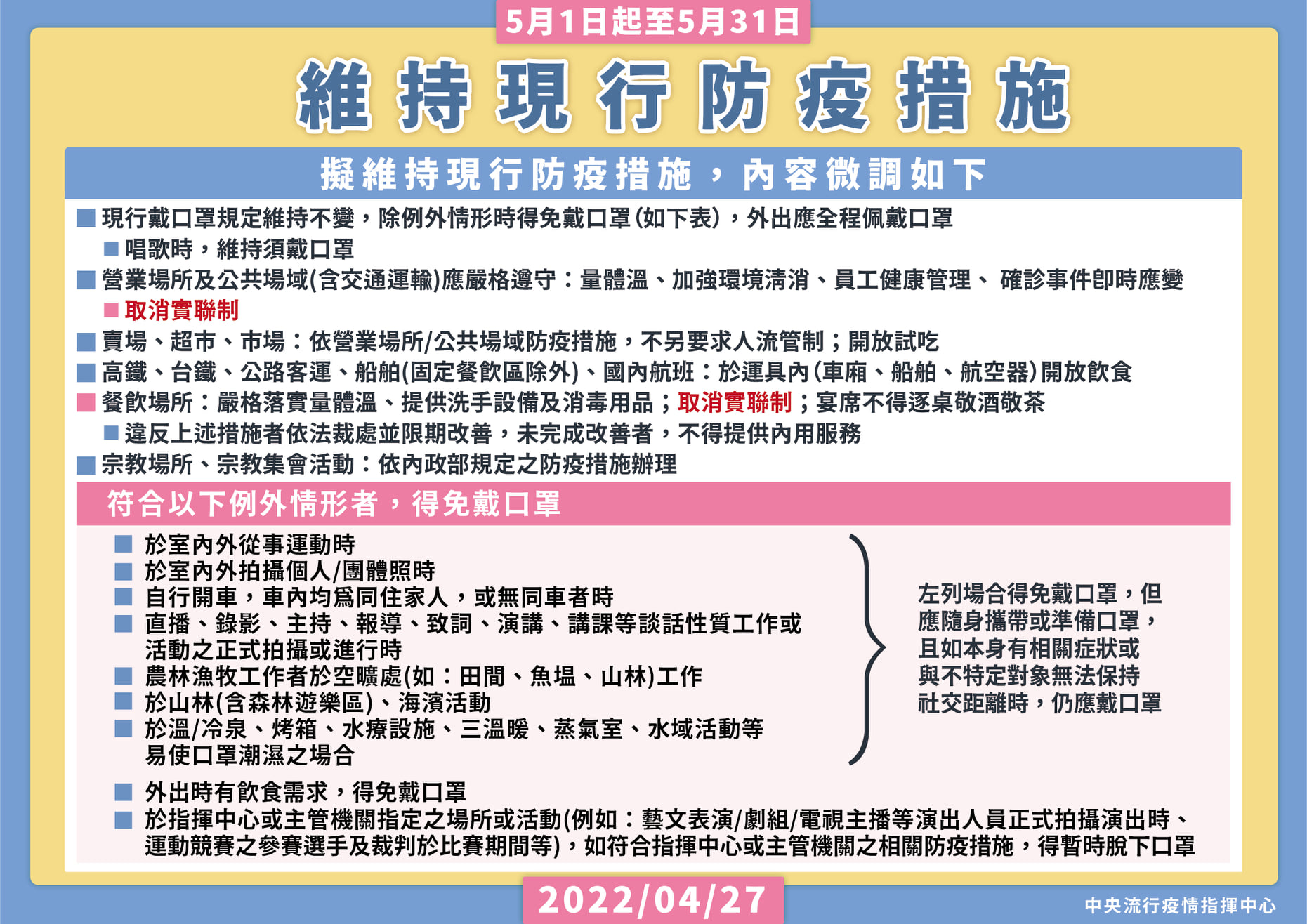 先前一直有提到以「臺灣社交距離APP」取代「簡訊實聯制」的資訊,經過改版「臺灣社交距離APP」及諸多討論後,中央流行疫情指揮中心在宣布5月1日-31日的防疫措施時,也同步宣布即日起取消「簡訊實聯制」,並鼓勵鼓勵民眾下載及使用「臺灣社交距離APP」。