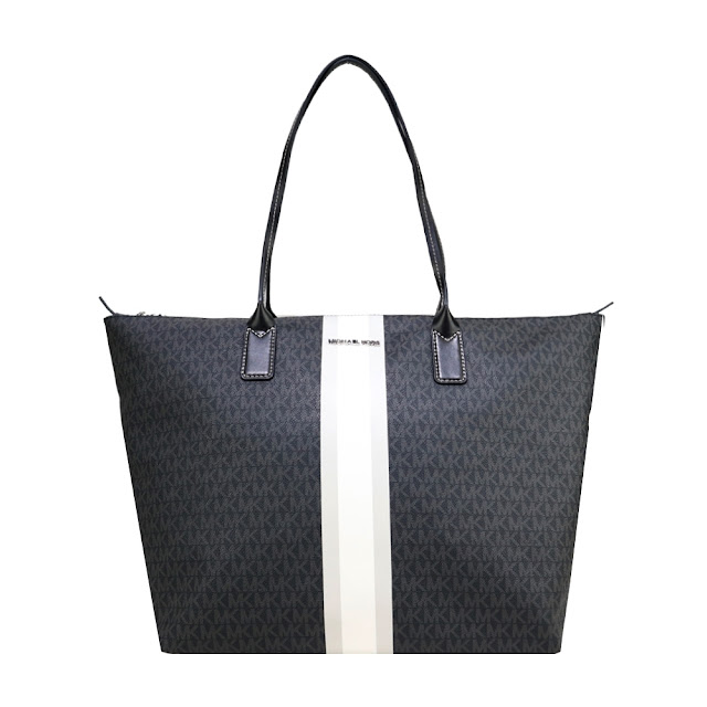 MICHAEL KORS TRAVEL直紋滿版拉鍊托特包以滿版LOGO的方式華麗點綴整個包身,中間還有跳色的設計小巧思,增加視覺的立體感之外,也讓整體識別度非常的高。此款托特包的內部空間相當大,讓你可以輕鬆收納A4文件、化妝包、雨傘、水壺,還有收納口袋的設計,讓你可以將小物放置於此,不怕翻找時困難喔!