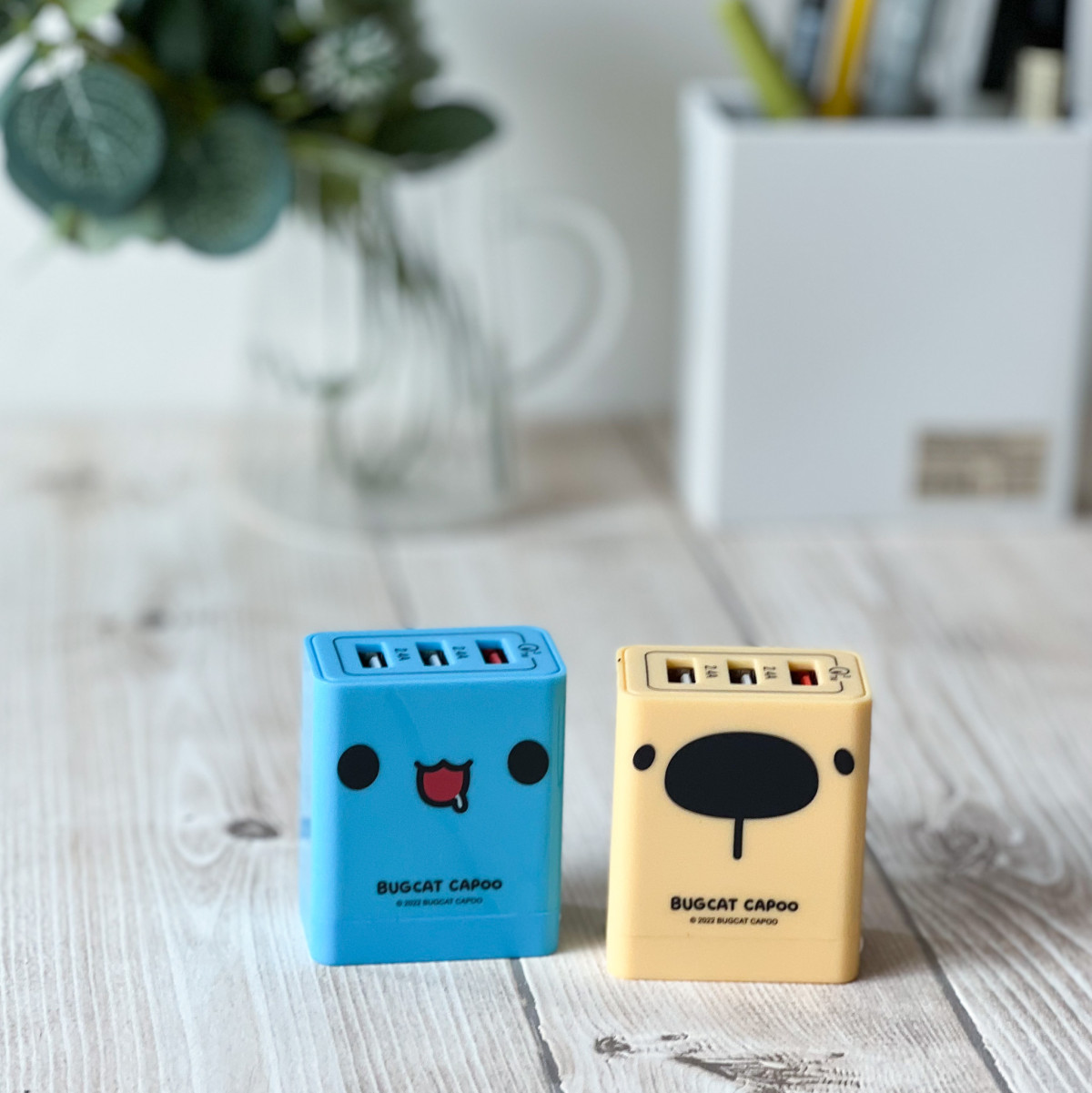 充電也要有咖波陪伴!可折疊插頭好收納的「三孔USB電源供應器」,不但適用於AC110~240國際通用電壓,使用咖波大頭設計,讓辦公室空間都療癒了起來~