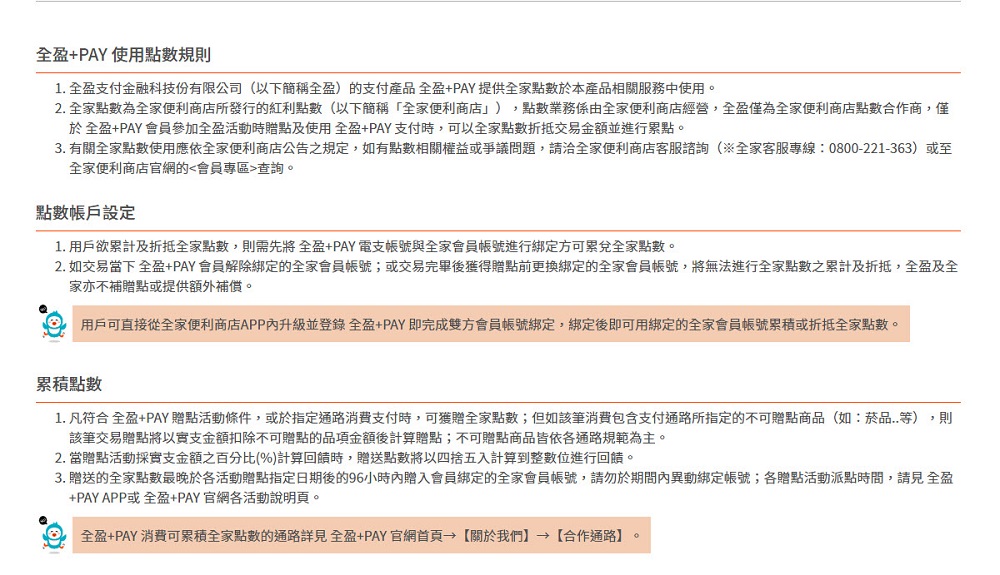 另一個可能比較多人在意的服務是「點數」,我們都知道全家便利商店的點數基本上能兌換商品、換購或是折抵現金,但主要都是用在全家的商品,不過全家導入「全盈+PAY」後,根據官網點數服務的說明,「凡符合 全盈+PAY 贈點活動條件,或於指定通路消費支付時,可獲贈全家點數;凡有與全盈合作全家點數折抵之通路,用戶於該通路使用 全盈+PAY 支付時,開啟應用程式上的全家點數折抵開關,便可使用全家點數折抵該通路消費金額,每300點全家點數可折抵1元新臺幣,每筆消費可折抵之金額上限為該筆消費總金額之100%」簡單來說,就是只要有加入「全盈+PAY」的合作通路,原則上都能累積全家點數或用全家點數來折抵合作通路消費的金額,這自然讓全家點數的用途變廣。