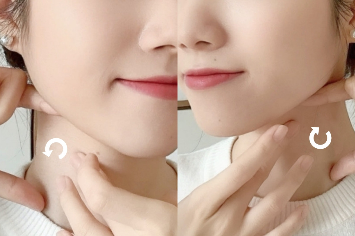 如果是針對局部紋路較深的部位,皮膚科醫生也建議可以用兩隻手指輔助、先撐開頸紋,接著畫圈在頸紋最深的部位加強按摩,讓保養品加強吸收。