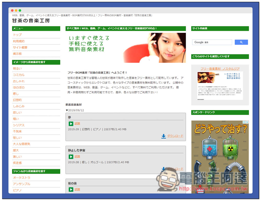 「甘茶の音楽工房」提供大量免費日本原創音樂素材網站