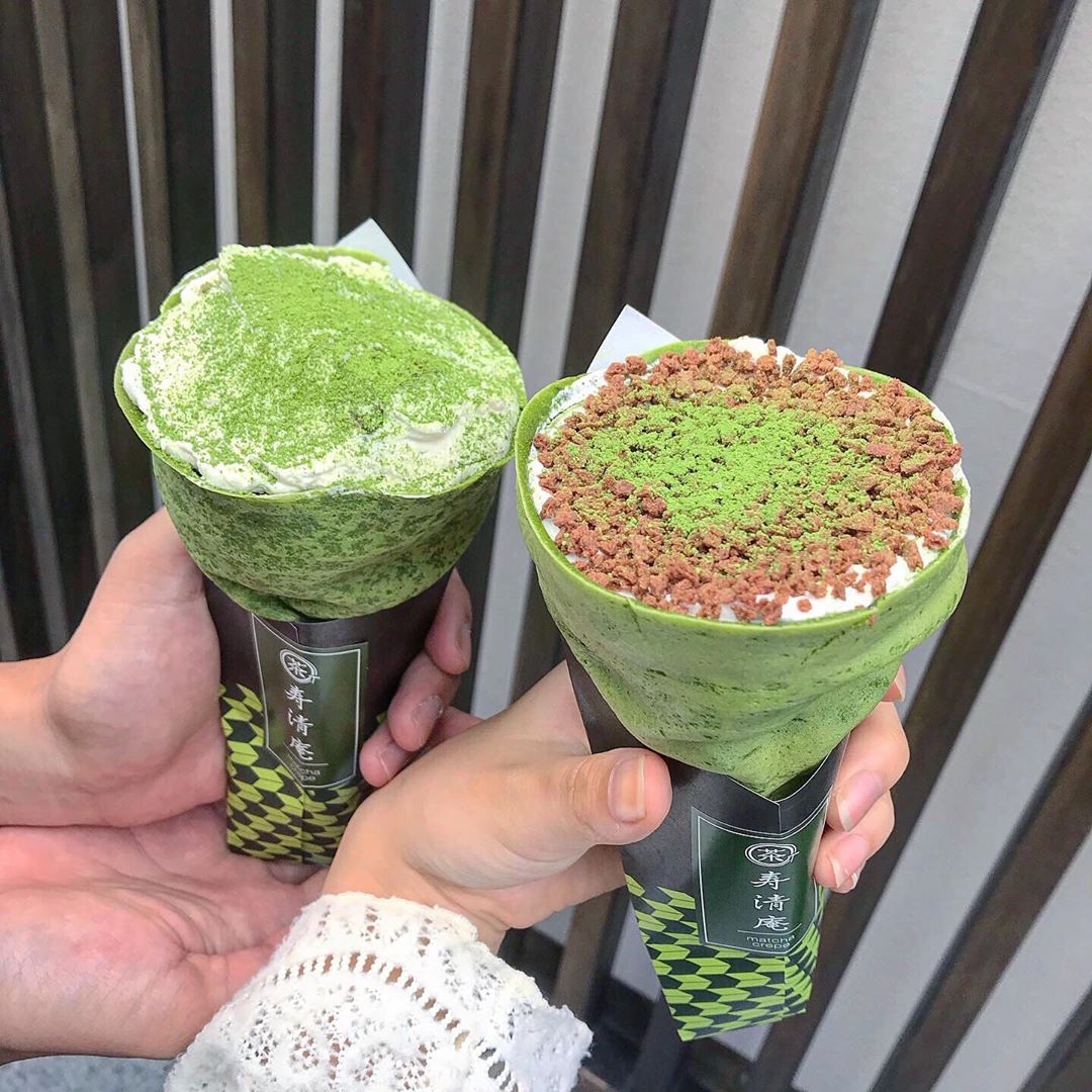 最後這家「寿清庵」和第一家 「KAGURACYAKA」一樣位於淺草,不過它主打的是便於邊走邊吃的散步美食「可麗餅」。不只可麗餅外皮選用京都抹茶老店「桑原善助商店」製作,內餡抹茶還分有宇治、祇園或是八坂等不同產地,且還有巧克力抹茶、焦糖抹茶、巧克力抹茶等創意口味,身為抹茶控絕對每款都想吃吃看。