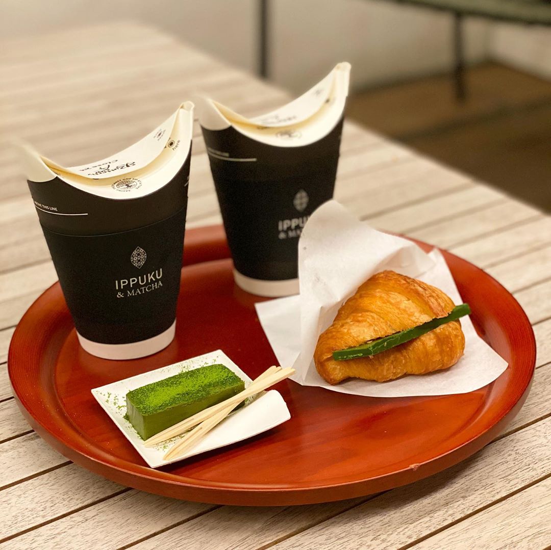 位於東京日本橋室町的「IPPUKU & matcha」也是一家宇治抹茶專賣店,除了抹茶拿鐵是經典必喝之外,店家號稱365天皆熱賣的「抹茶可頌」也是不容錯過。現烤剛出爐的可頌夾附著抹茶巧克力片,一口咬下外層喀滋喀滋酥香又迷人,而苦甜的內餡遇熱融化,吃到後面還能嚐到茶香的回甘,不論是作為早餐還是下午茶都覺得超幸福。