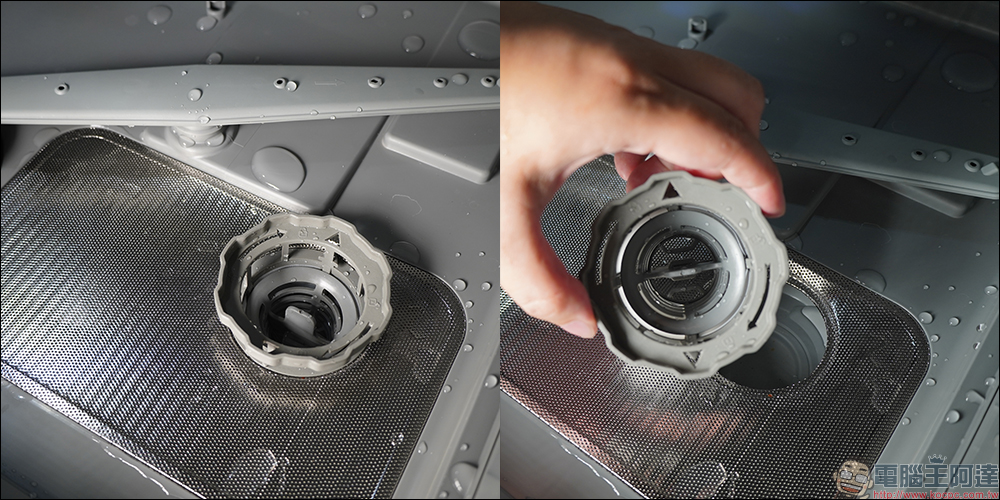 仔細看會發現旋轉噴臂的噴水口設計了些許角度,可以讓洗滌餐具範圍更廣泛、更全面。